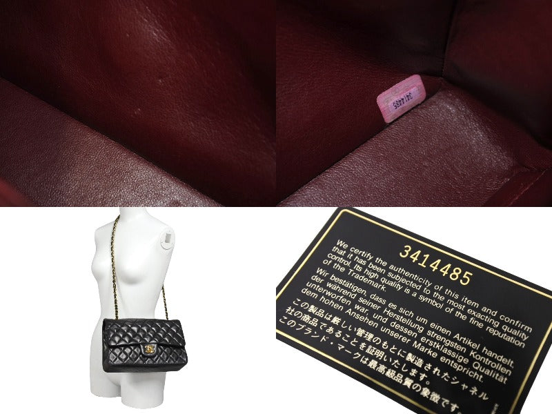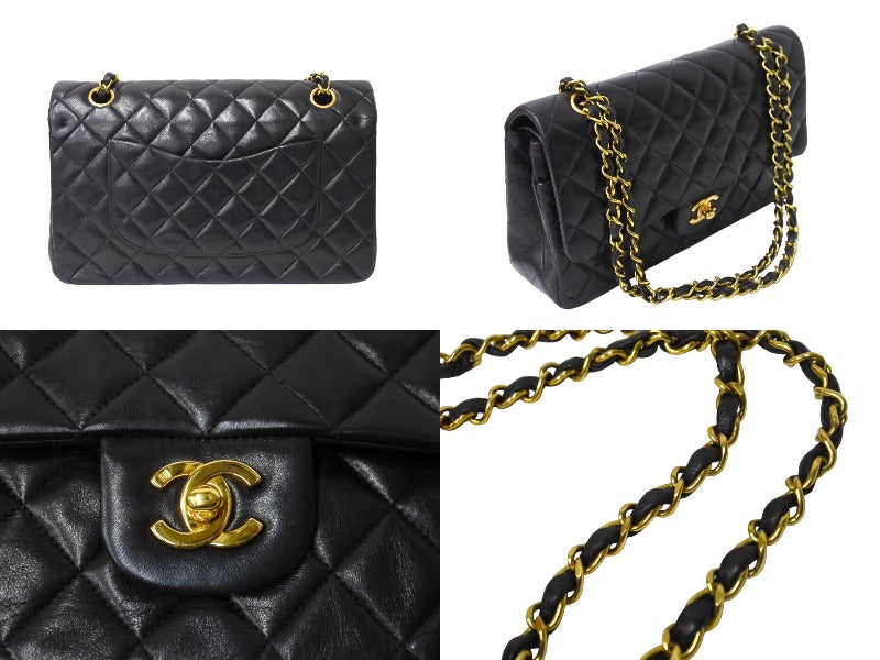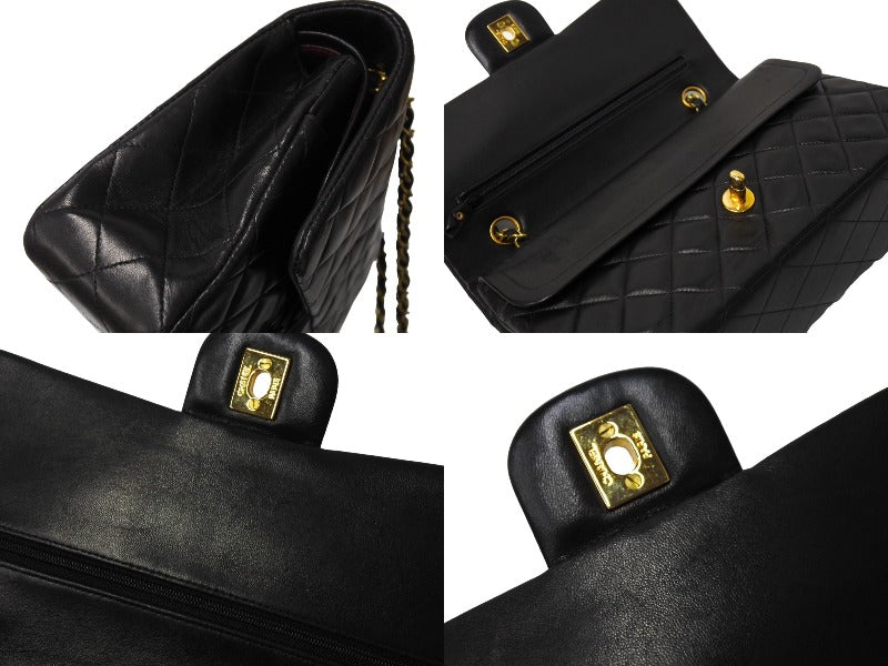 CHANEL シャネル マトラッセ25 チェーンショルダーバッグ 3番台 Wチェーン Wフラップ ココマーク ラムスキン ブラック 美品 中古 65938