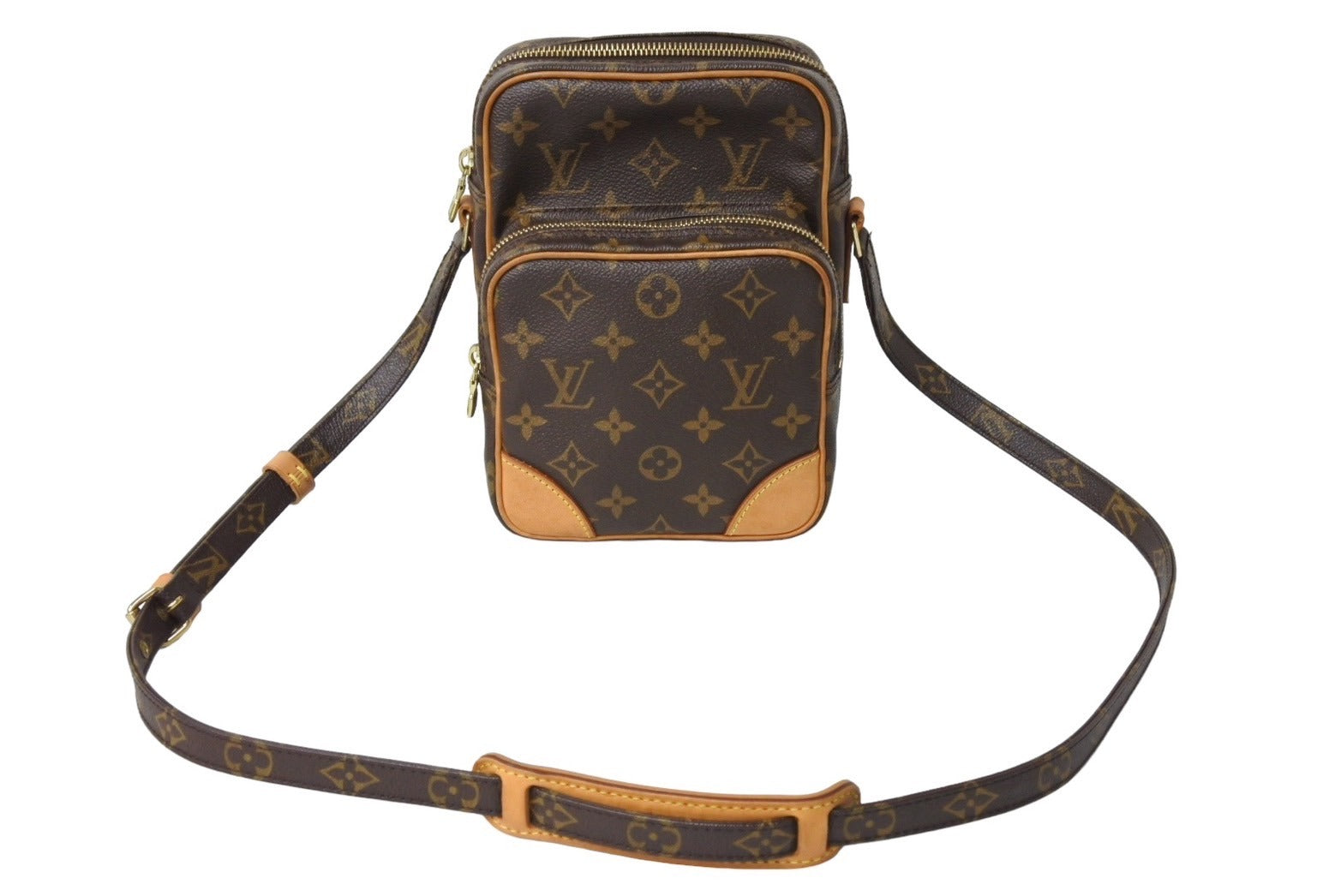 四角いフォルムが人気のヴィトンの定番のコンパクトタイプのショルダーバッグ。