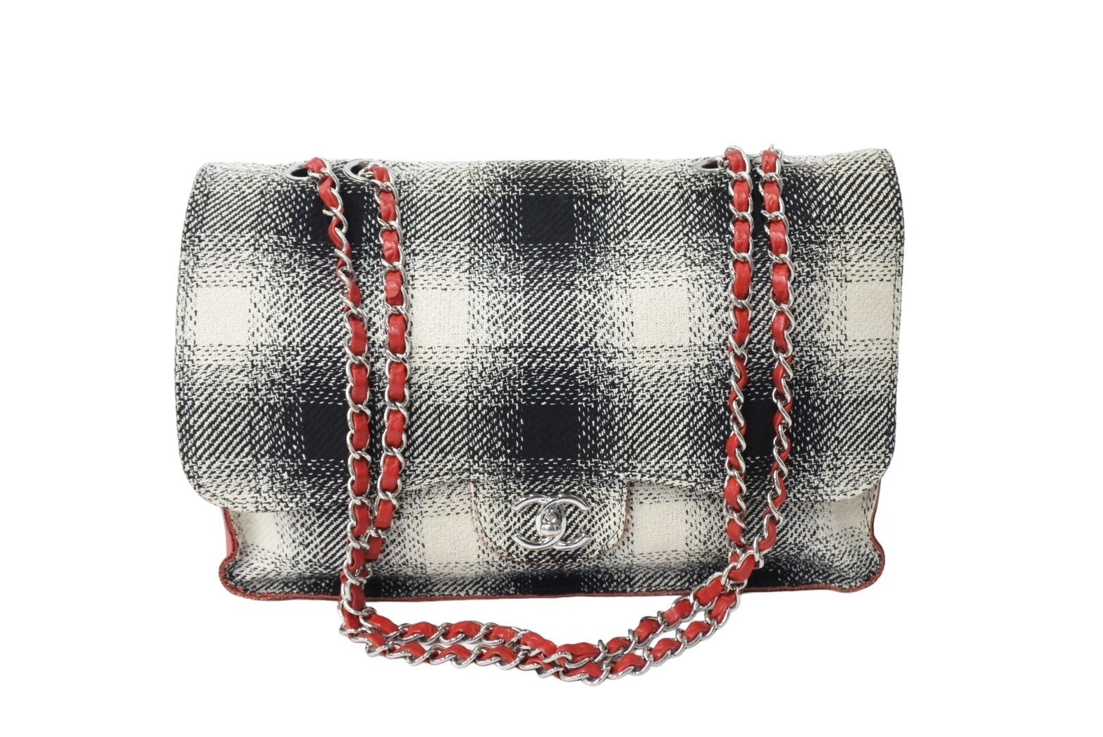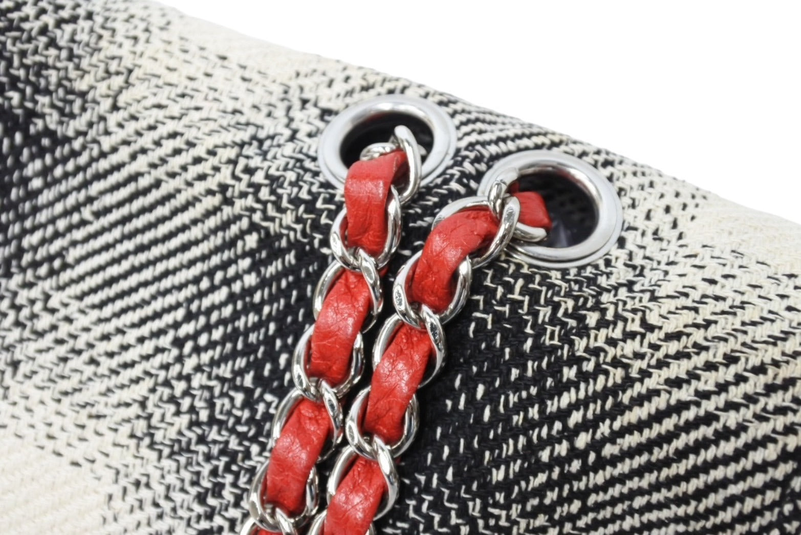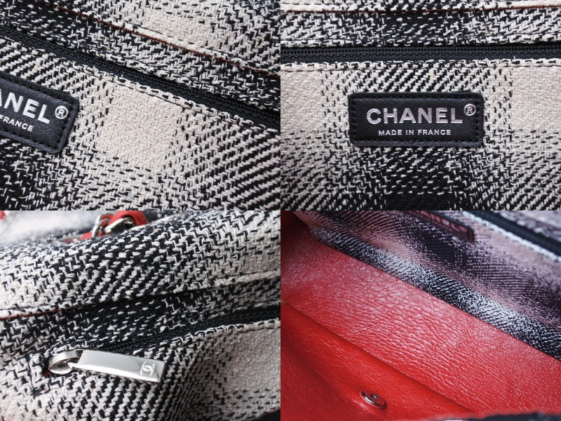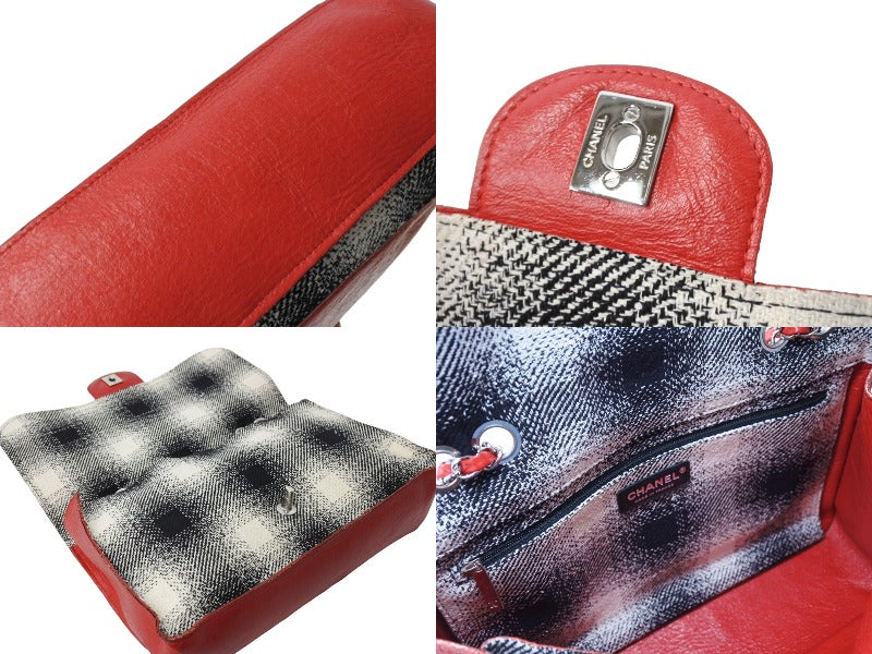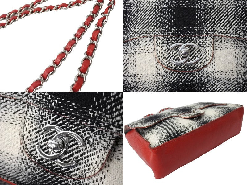 CHANEL シャネル シングルフラップ Wチェーンショルダーバッグ 18番台 ココマーク カーフスキン キャンバス ツイード 美品 中古 66318