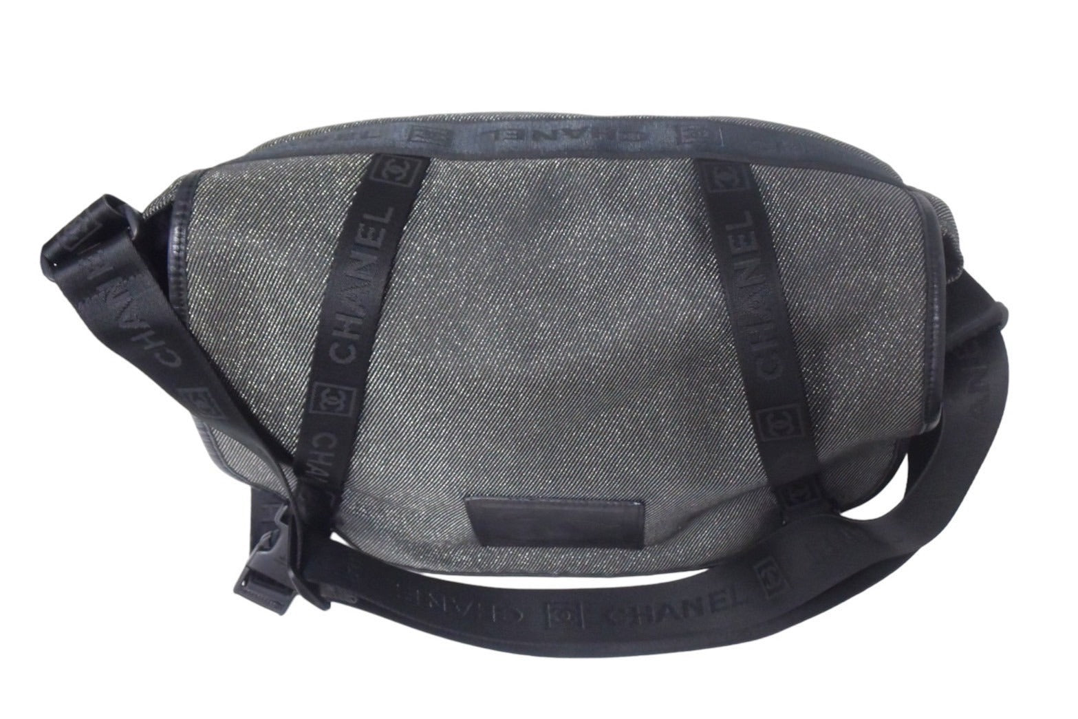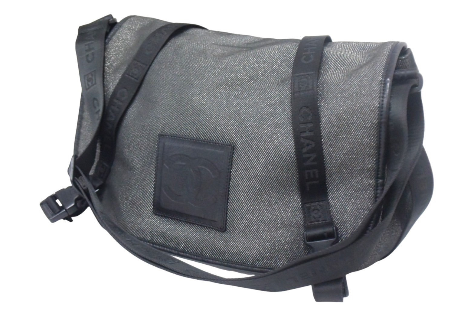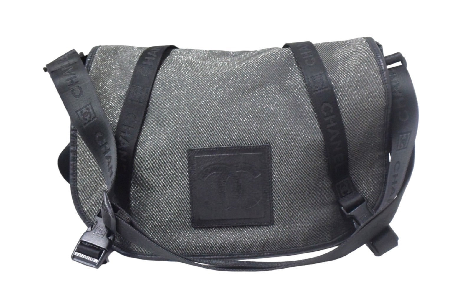極美品 CHANEL シャネル ヴィンテージ スポーツライン ショルダーバッグ 10番台 ラメ ジャガード グレー ブラック 中古 66934