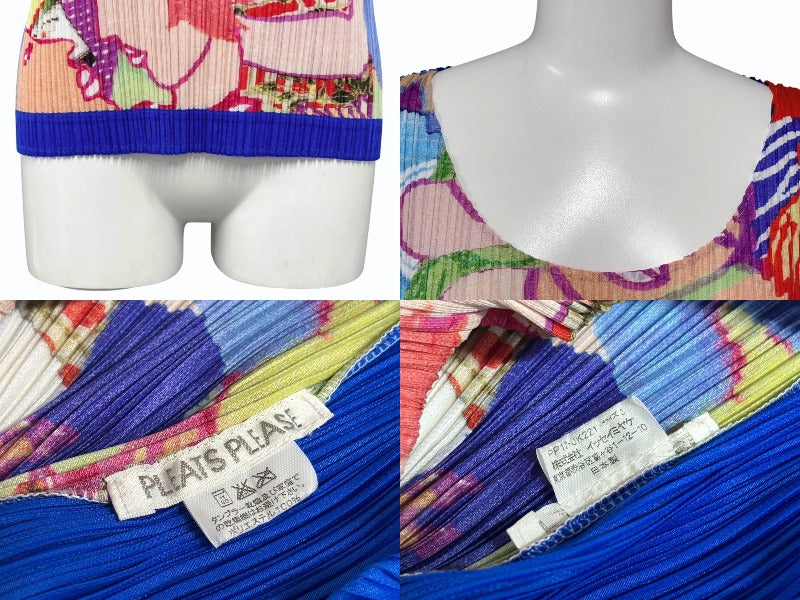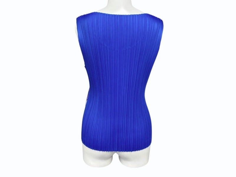 極美品 ISSEY MIYAKE イッセイミヤケ PLEATS PLEASE プリーツプリーズ タンクトップ PP12-JK221 サイズ3 ブルー 中古 4b006899