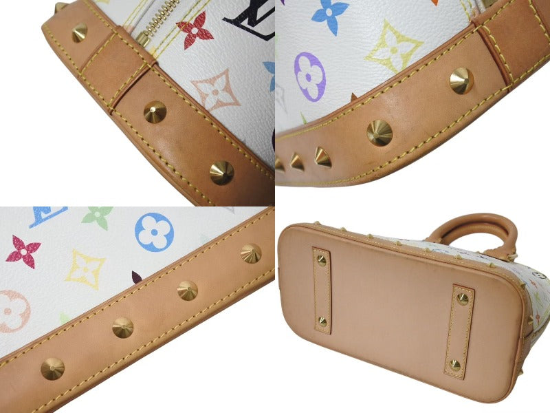 裏面、角、マチ、ハンドル、ハンドル付け根にスレあり。内側使用感あり。ヌメ革シミ、ヤケあり。金具小傷あり。
