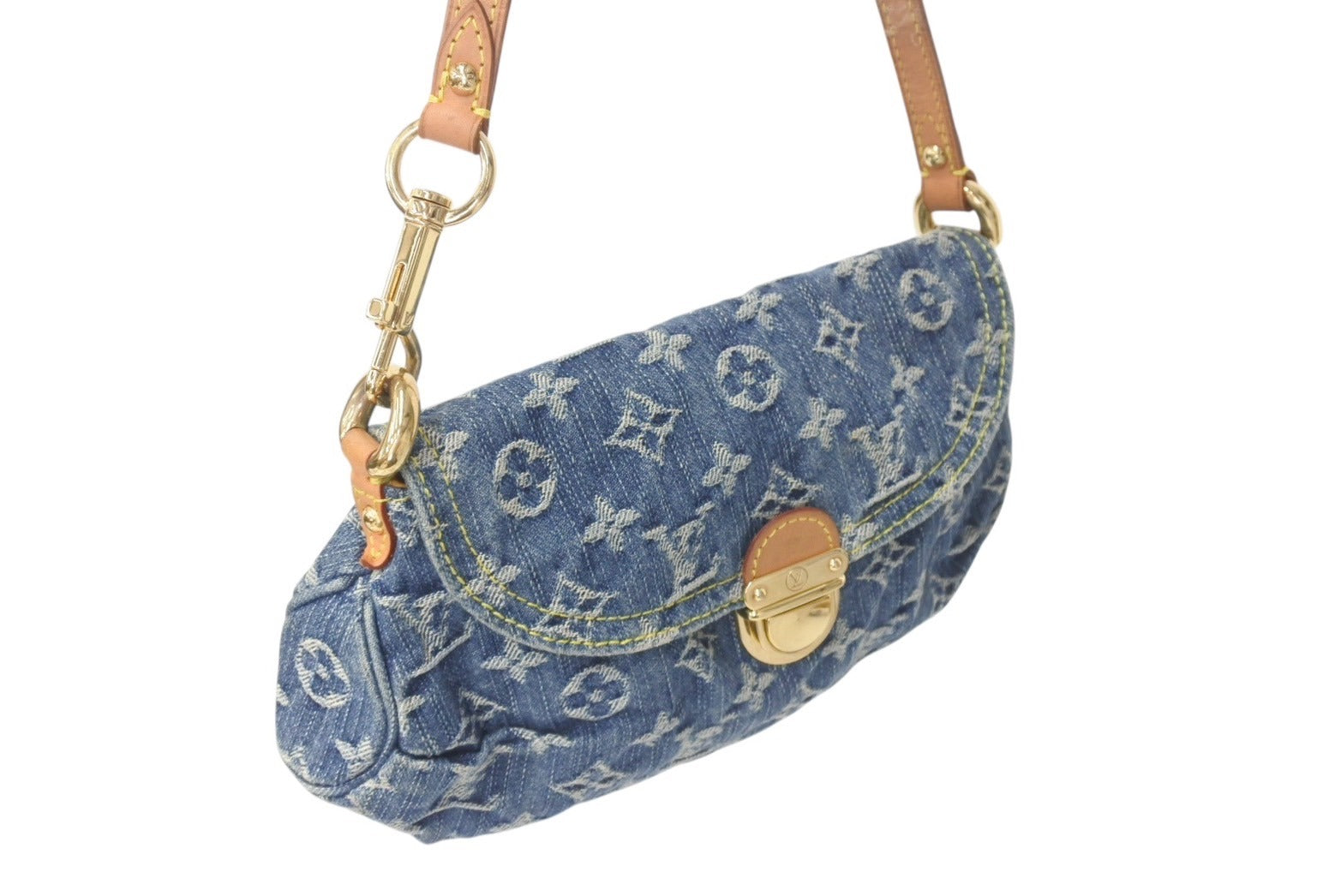 LOUIS VUITTON ルイヴィトン ミニプリーティ ハンドバッグ M95050 モノグラムデニム レザー ブルー 美品 中古 4b000967