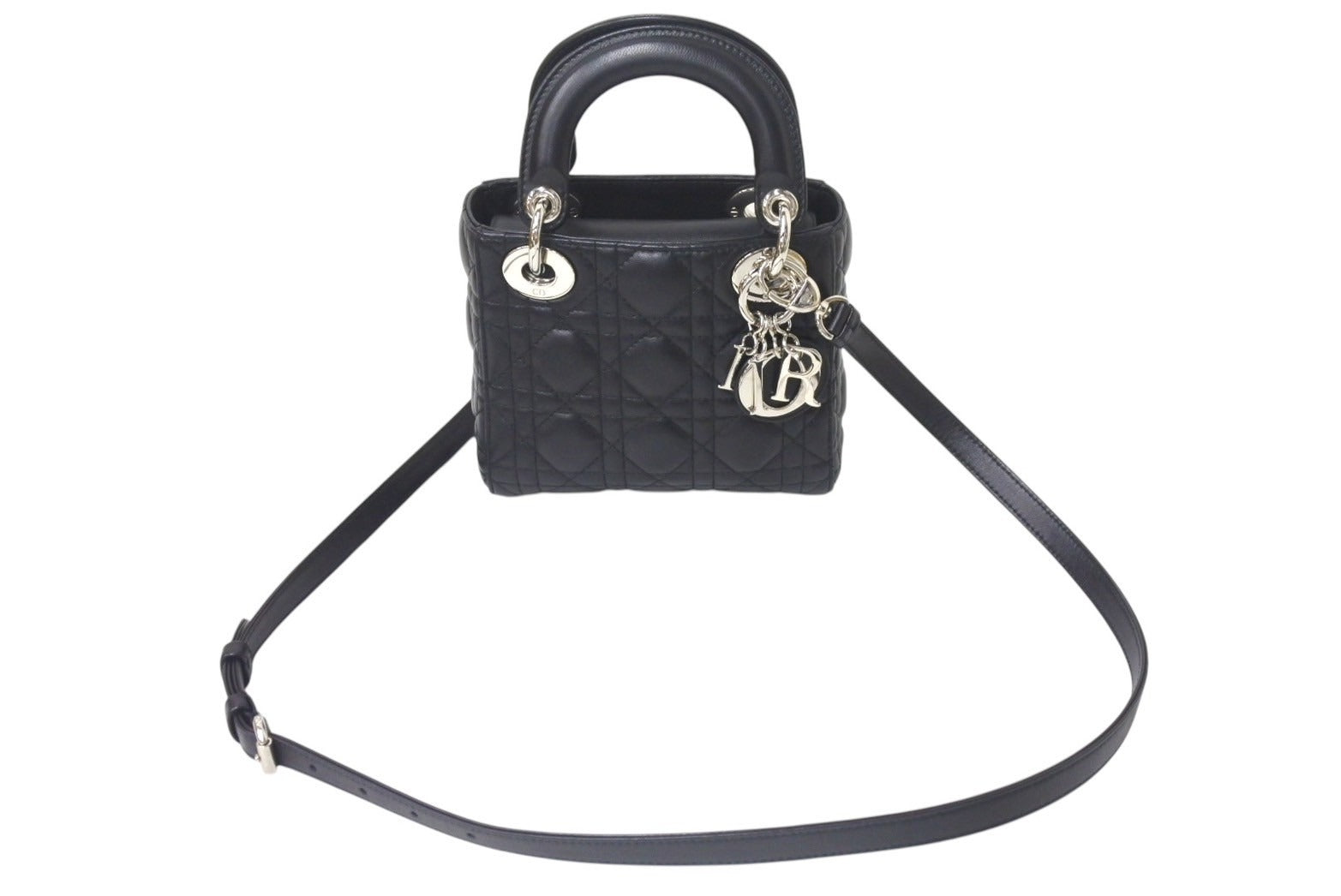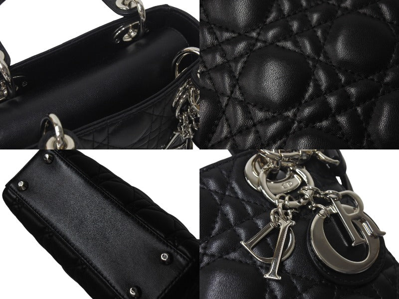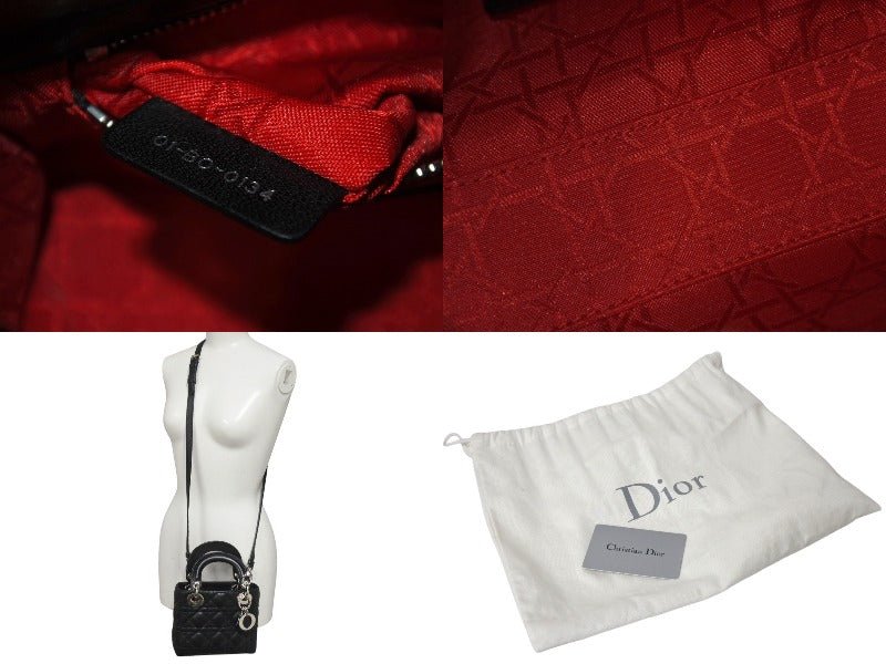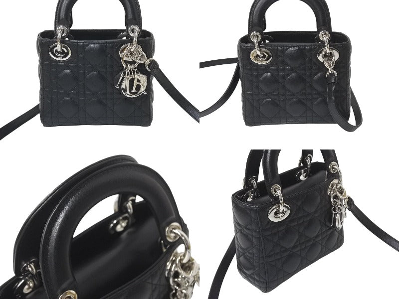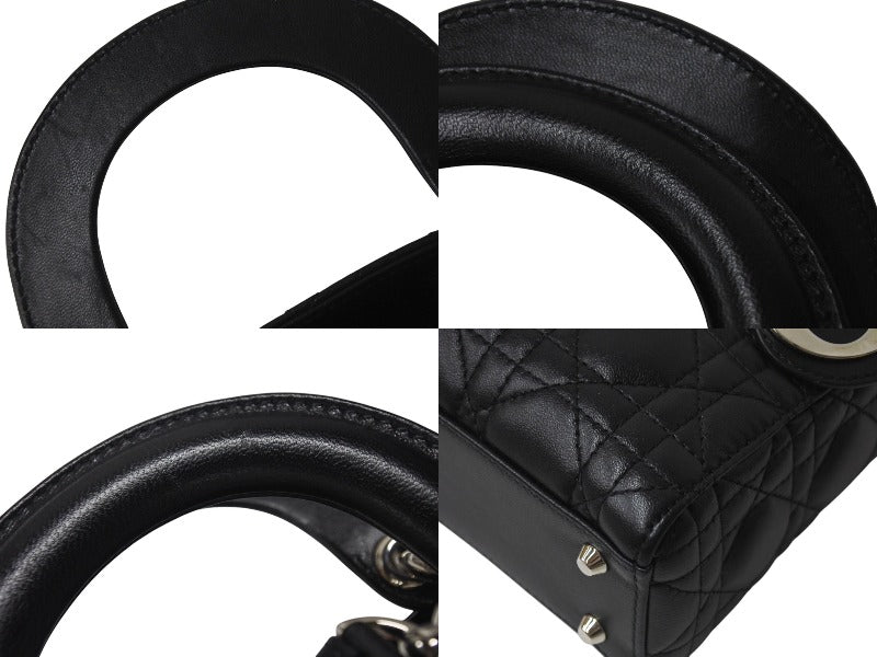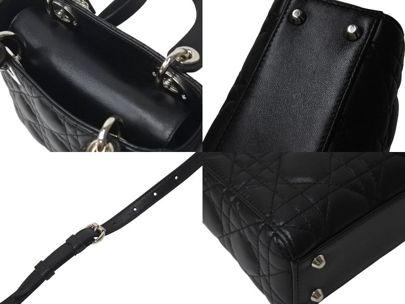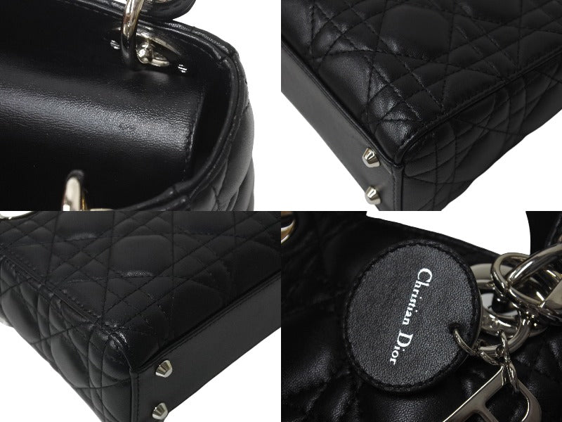 ChristianDior クリスチャンディオール レディディオール ミニ カナージュ 2WAY ハンドバッグ ブラック ラムスキン シルバー金具 美品 中古 4b001174