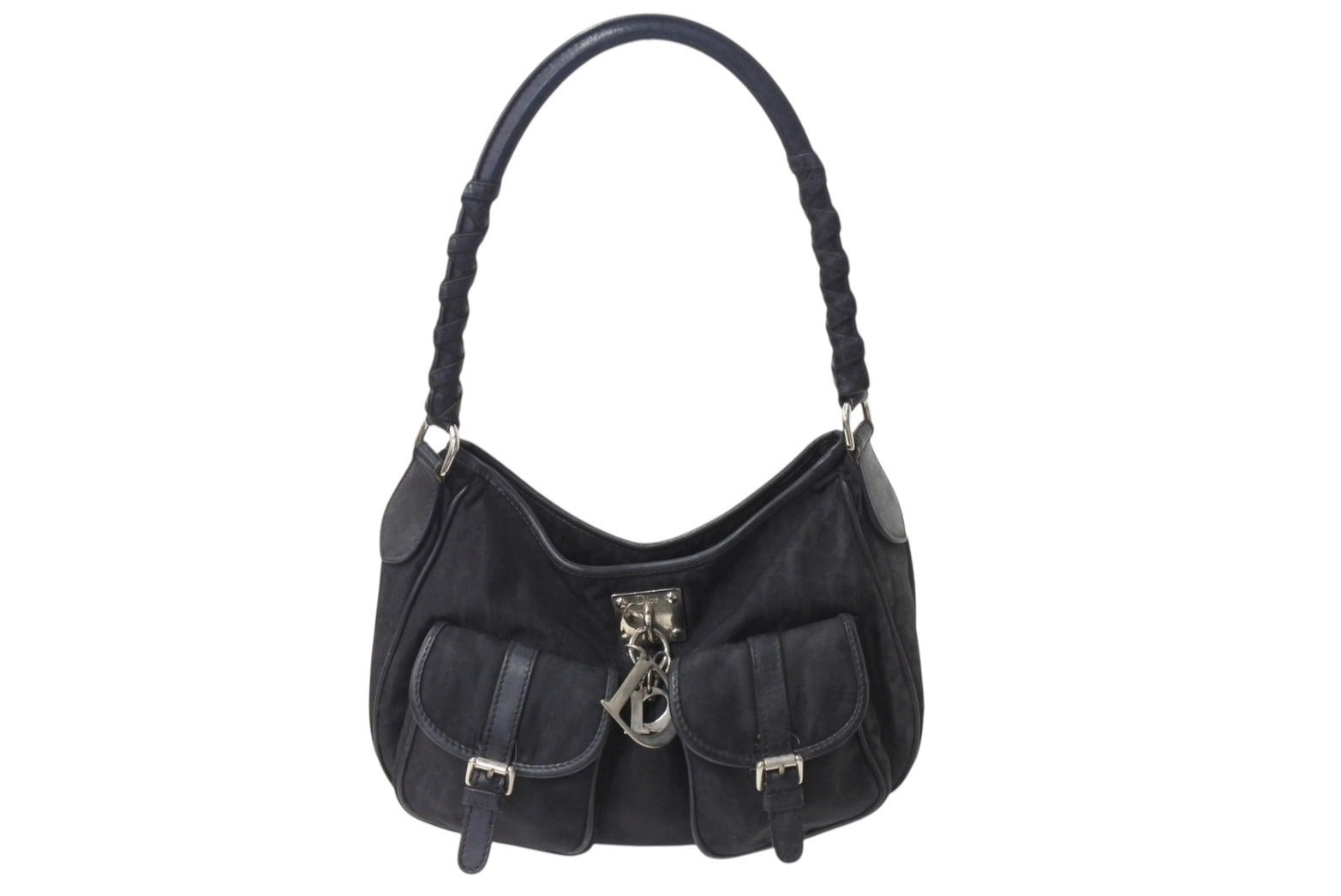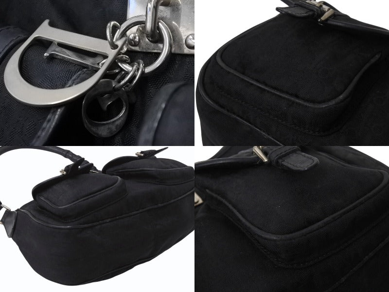 CHRISTIAN DIOR クリスチャンディオール トロッターライン ハンドバッグ ショルダーバッグ チャーム ブラック シルバー 良品 中古 4b001651