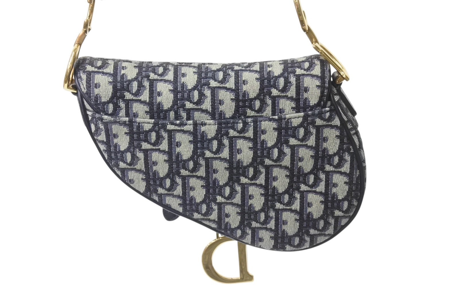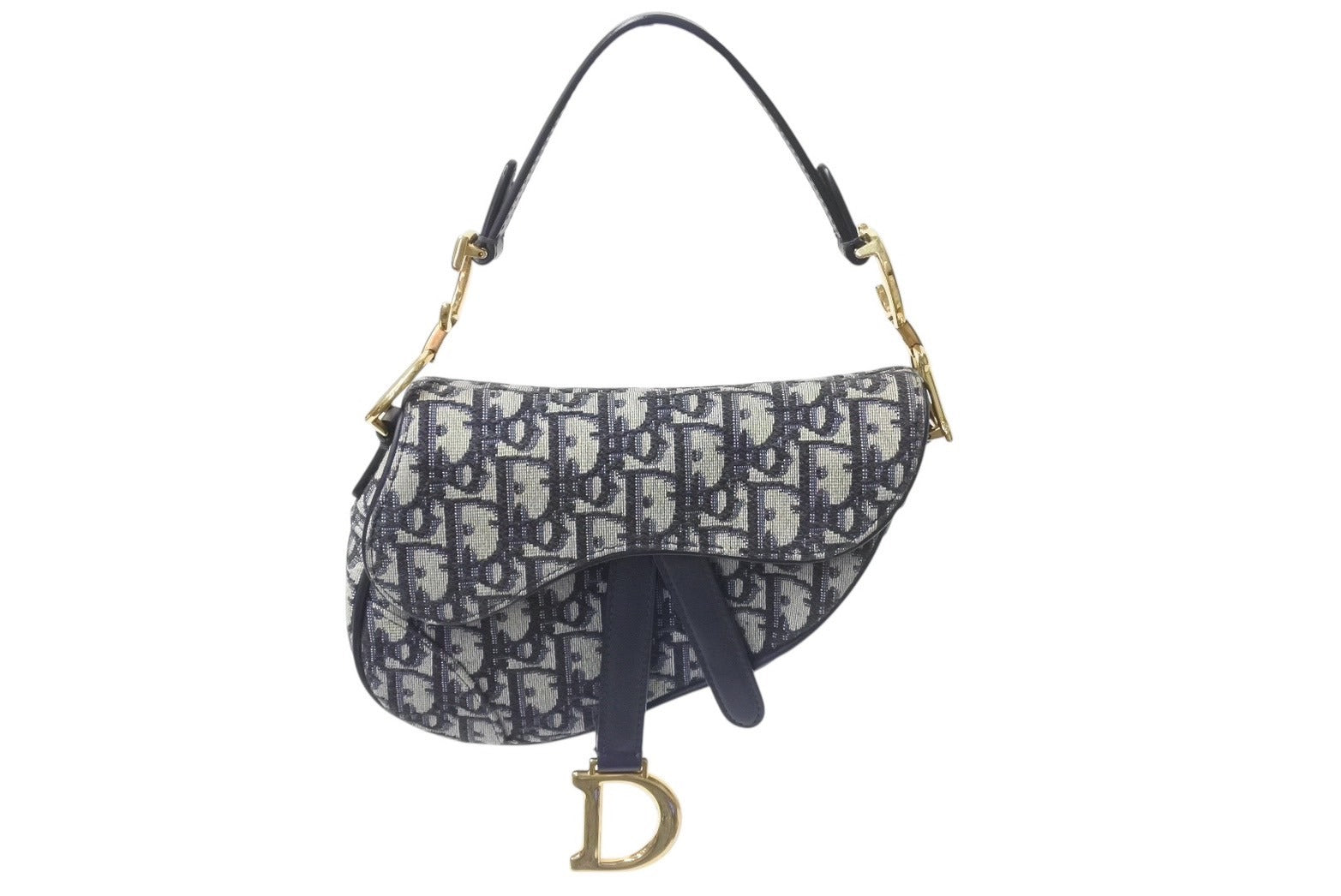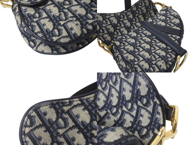 極美品 Christian Dior クリスチャンディオール サドルミニバッグ ハンドバッグ M0456CTZQ オブリーク ネイビー 中古 4b001672