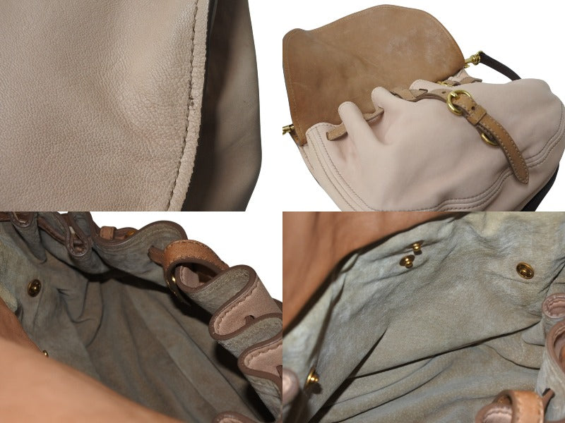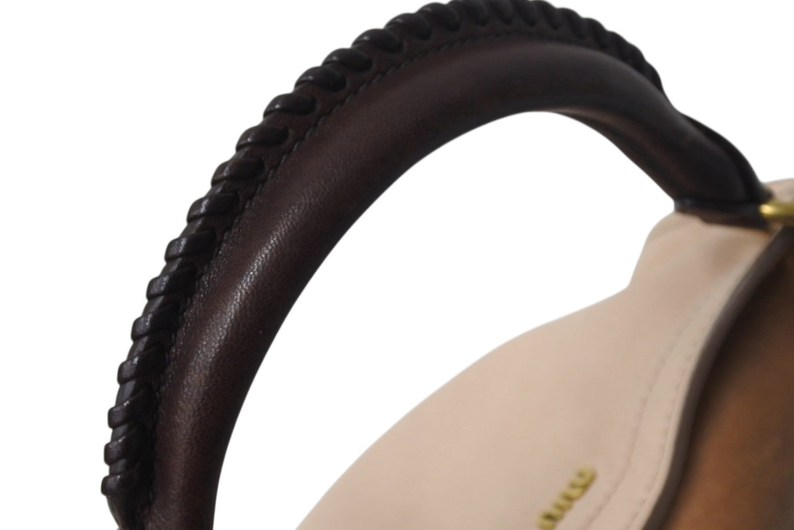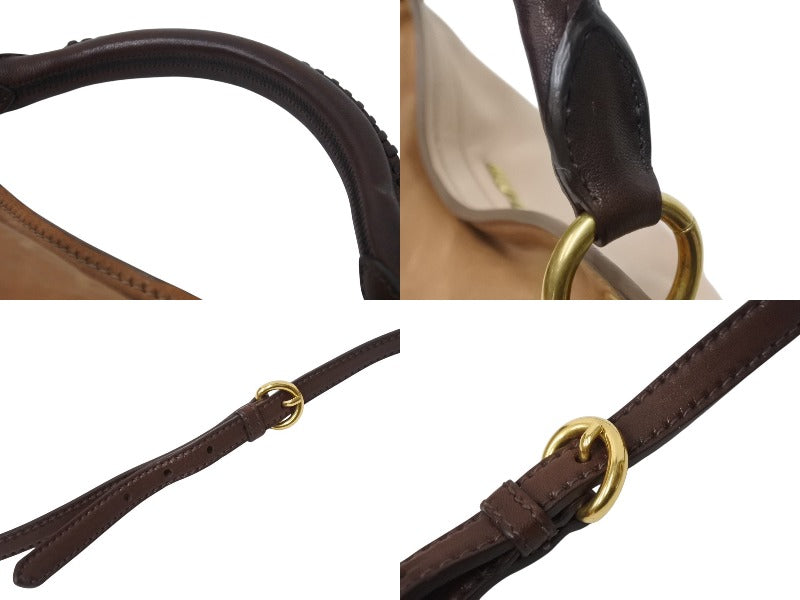 MIUMIU ミュウミュウ ハンドバッグ ショルダーバッグ 2WAYバッグ ベージュ ブラウン レザー ゴールド金具 良品 中古 4b001701