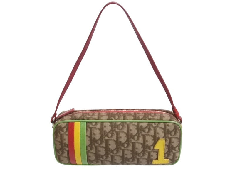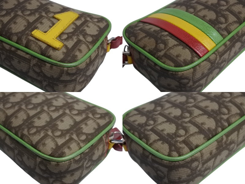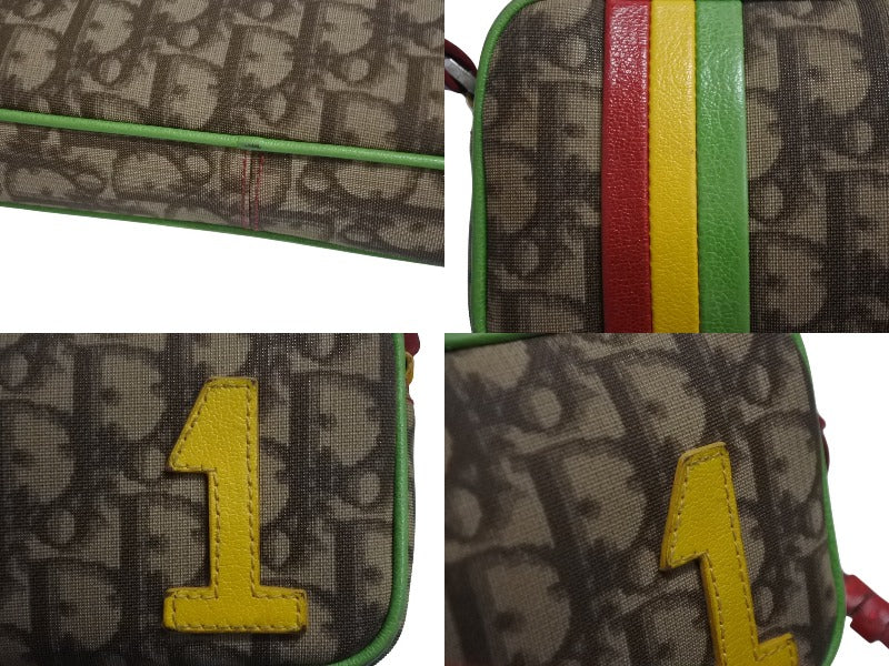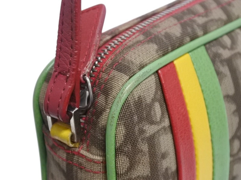 極美品 Christian Dior クリスチャンディオール ガリアーノ期 トロッター ポーチ ハンドバッグ 05-MA-0044 ラスタカラー 中古 4b002380