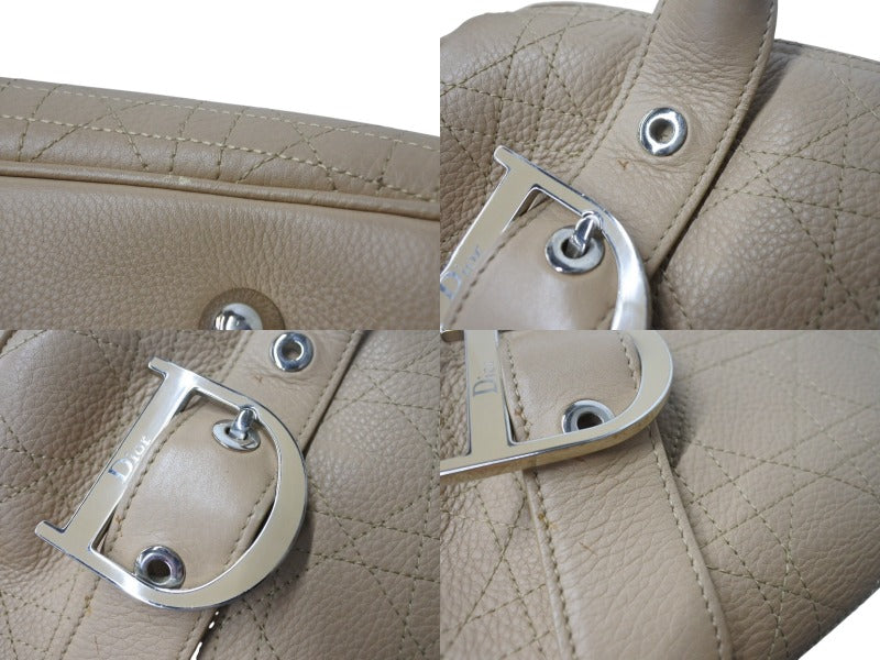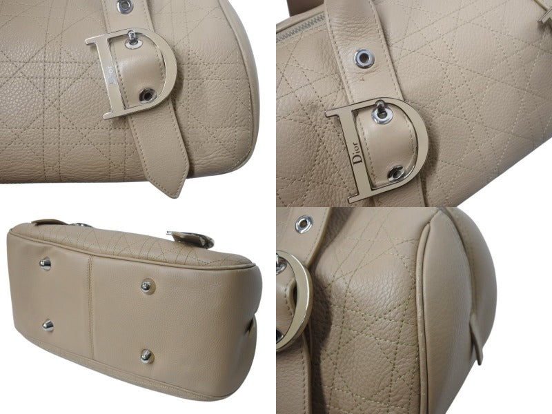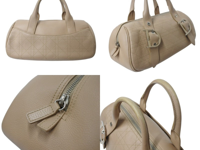 CHRISTIAN DIOR クリスチャンディオール カナージュ ミニボストンバッグ ハンドバッグ ロゴ金具 レザー ベージュ 美品 中古 4b002408