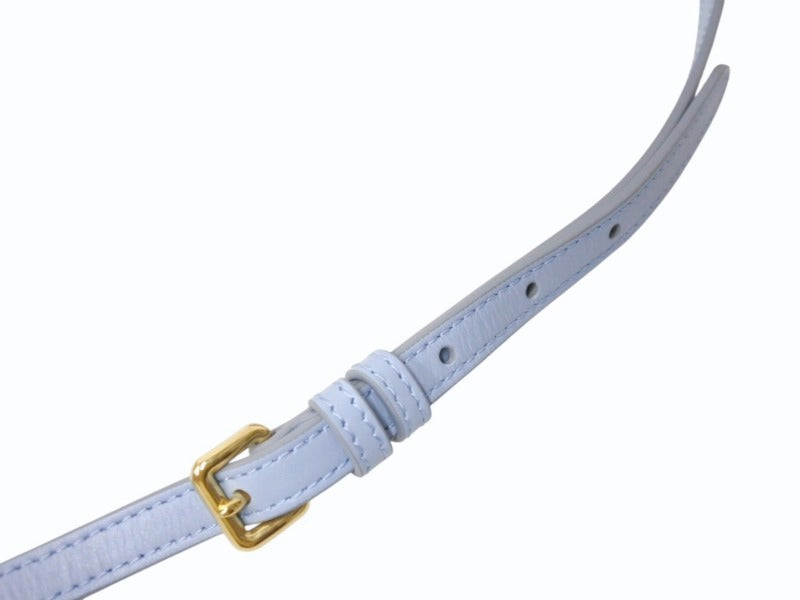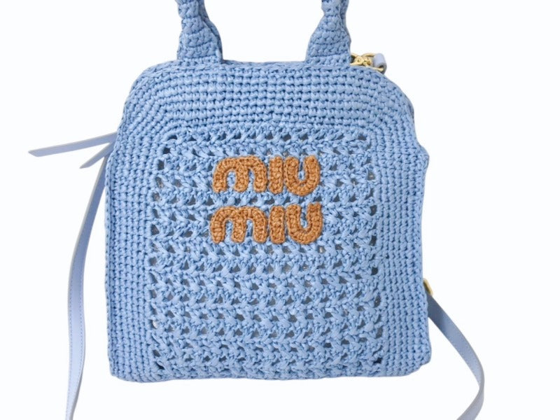 一目でわかるアイコニックなMIU MIU ロゴが存在感を放ち、メタルパーツが洗練されたコントラストを演出するデザインで可愛らしいバッグです。