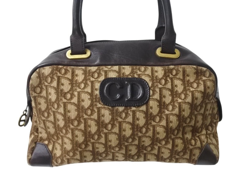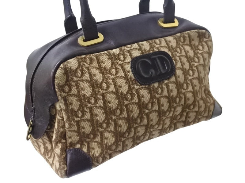 CHRISTIAN DIOR クリスチャンディオール トロッター ボストンバッグ ハンドバッグ 27cm ブラウン ベージュ ゴールド金具 美品 中古 4b002901