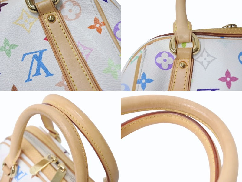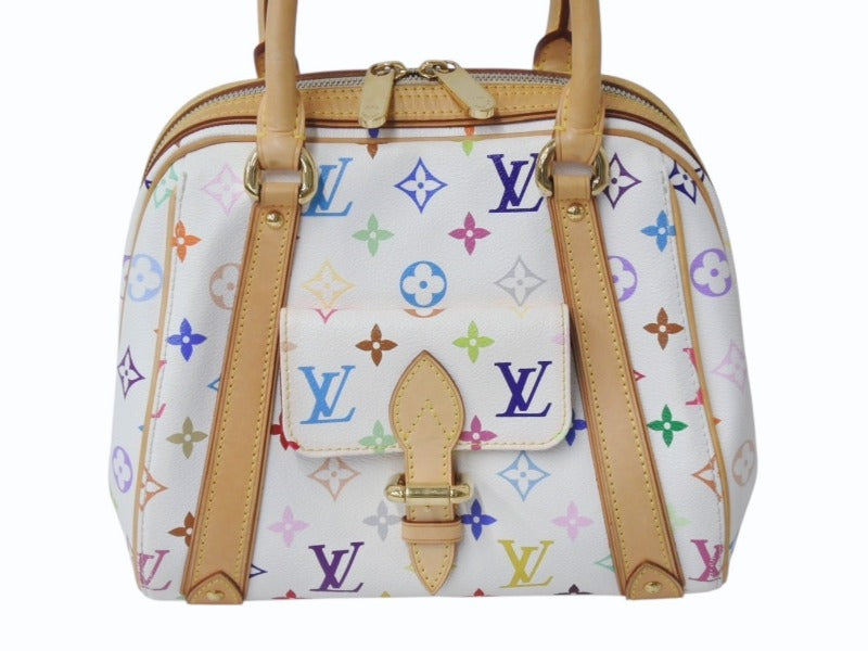 カラフルなロゴが全面に散りばめられた、ポップで可愛らしいデザインのハンドバッグです。