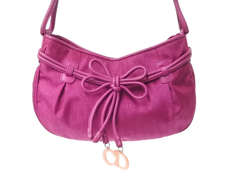 極美品 ChristianDior クリスチャンディオール トロッター ハンドバッグ レザー ジャガード パープル ピンク シルバー金具 中古 4b003579