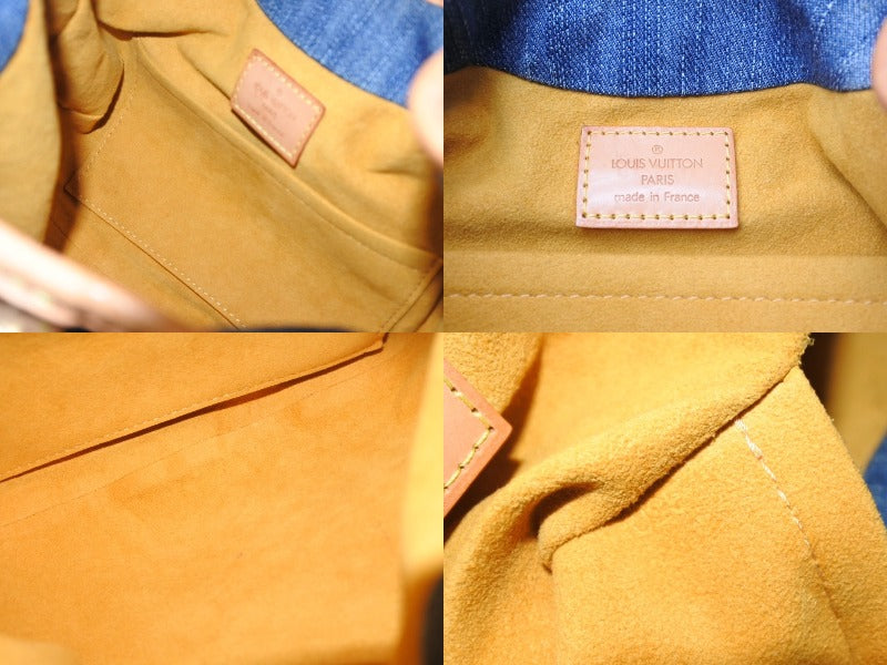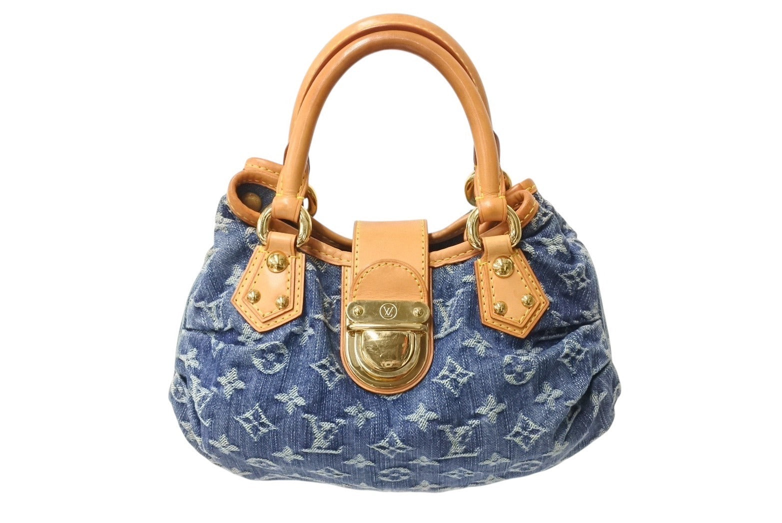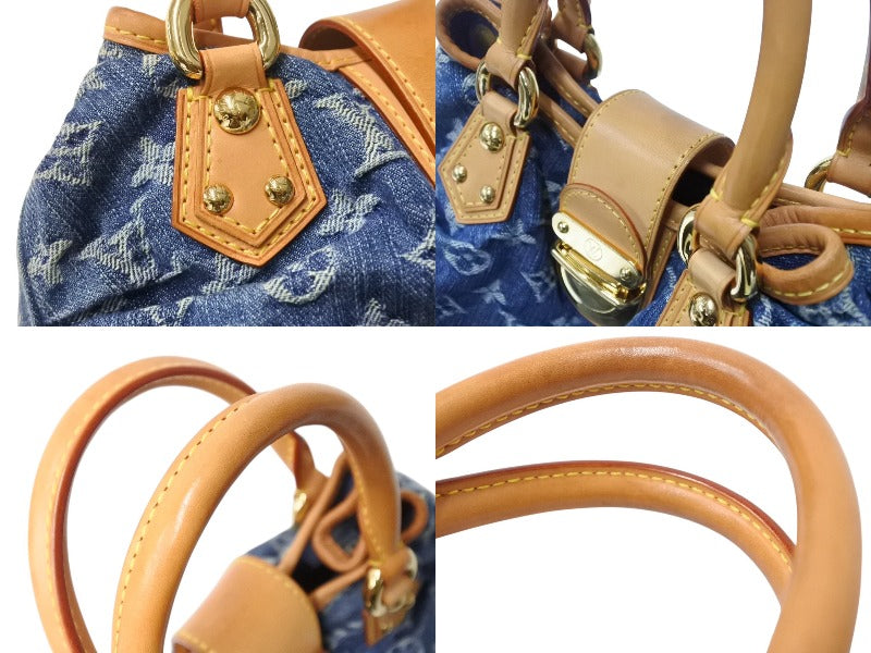 LOUIS VUITTON ルイヴィトン プリーティ ハンドバッグ M95020 モノグラム デニム レザー ブルー ゴールド金具 美品 中古 4b003613