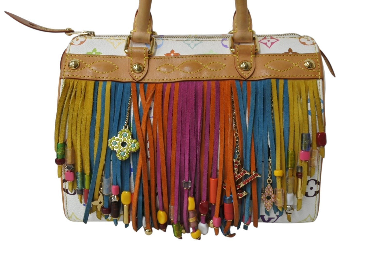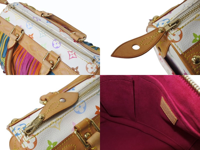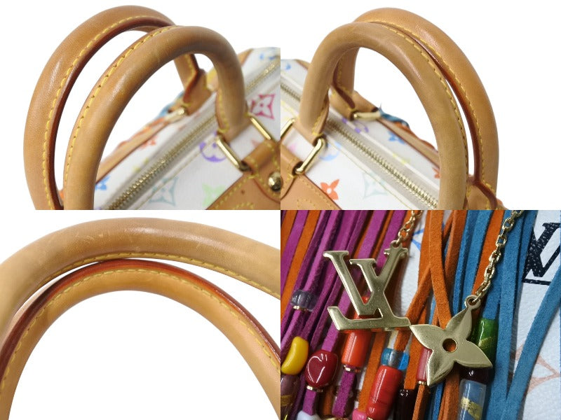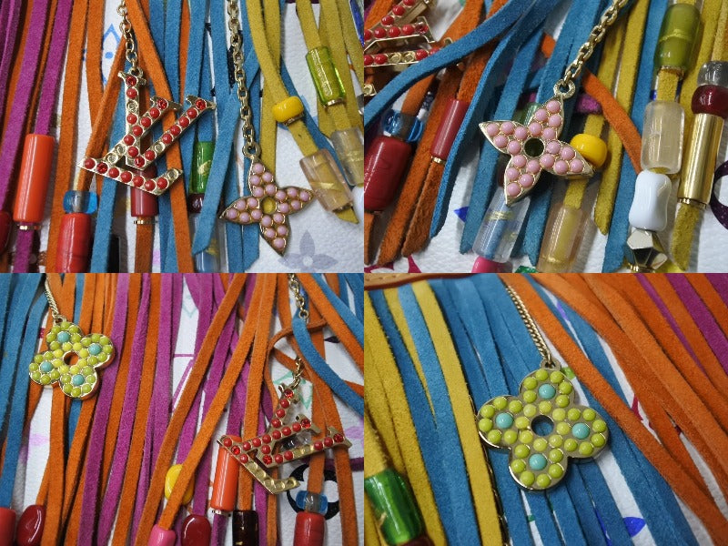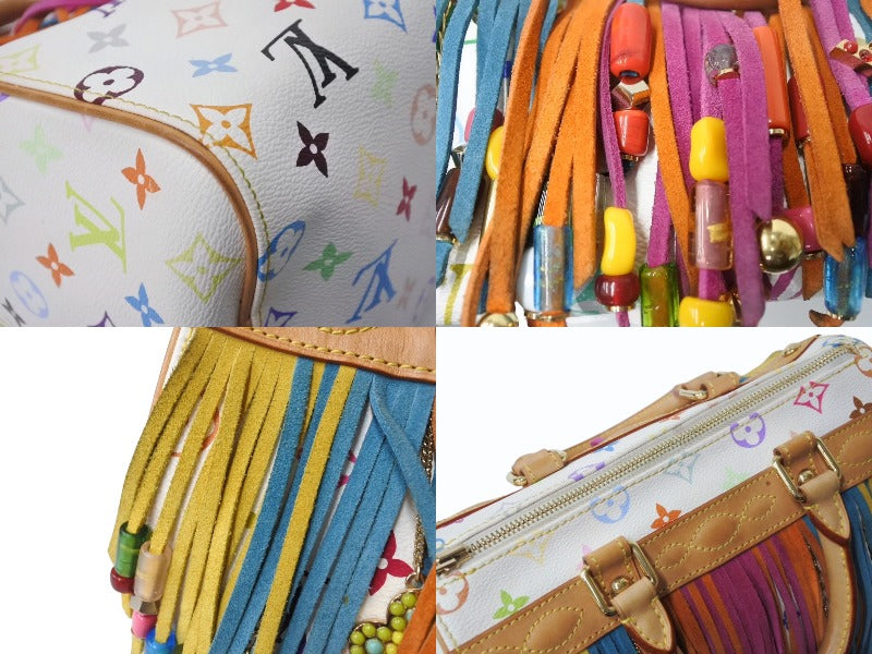 ビーズ、ラインストーンに取れあり。パイピングにスレ、汚れあり。多少の角スレあり。表面少々スレ、ヤケ、汚れあり。金具箇所にスレ、小傷あり。ヌメ革部分にスレ、シミ、少々ヤケあり。ハンドルにスレ、シミ、ヤケあり。内側少々の汚れあり。外側ポケットに変色あり。その他使用感の少ない状態です。