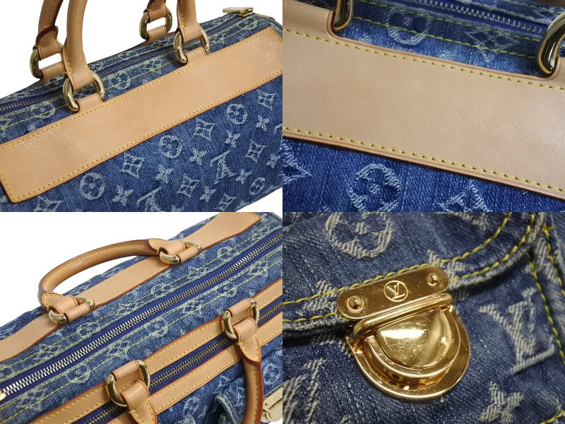 極美品 LOUIS VUITTON ルイヴィトン ネオスピーディ ハンドバッグ M95019 モノグラム デニム インディゴブルー ゴールド金具 中古 4b003739