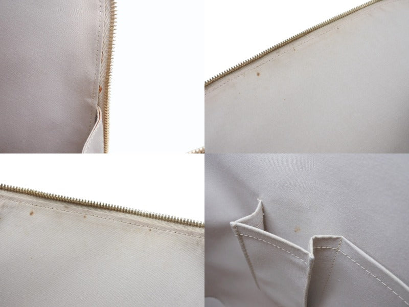 表面にスレ、汚れ、ひび割れ箇所あり。ハンドルにスレ、汚れ、コバスレあり。底面スレ、押し跡あり。金具にスレ、小傷あり。内側に汚れあり。その他使用感の少ない状態です。