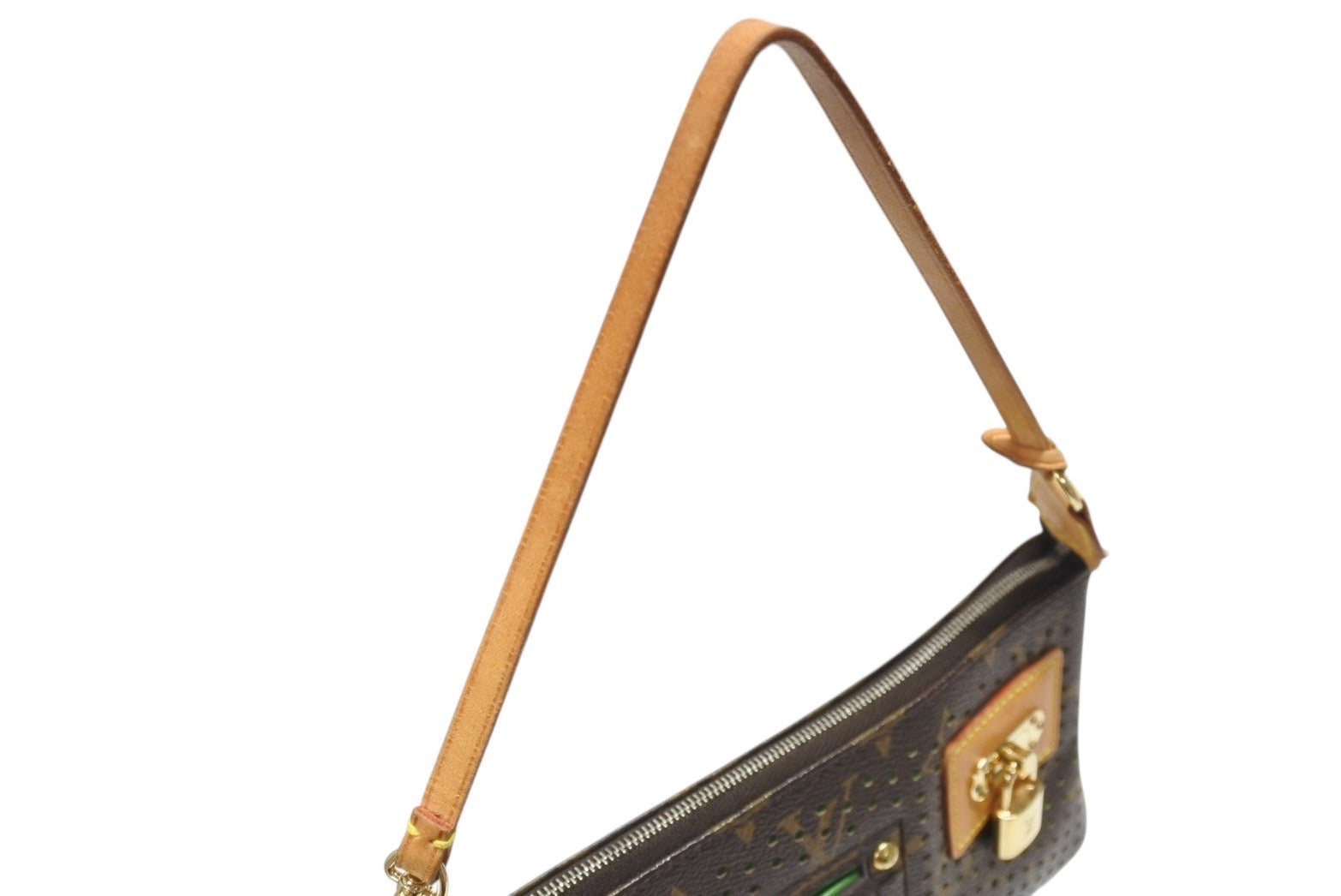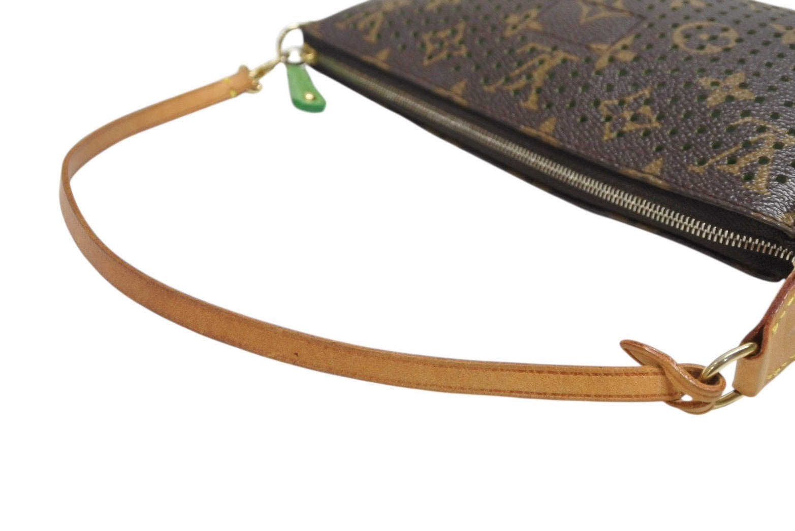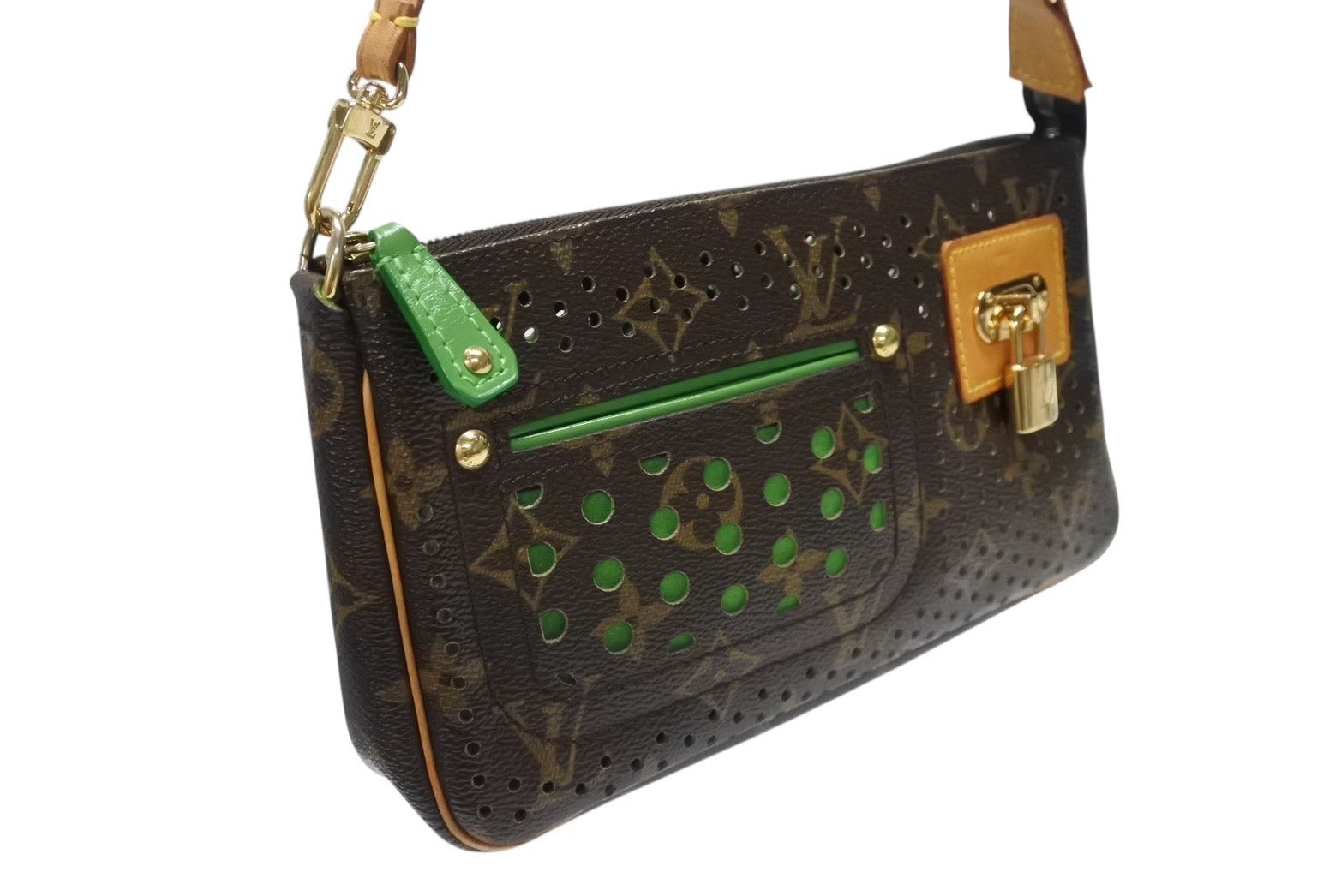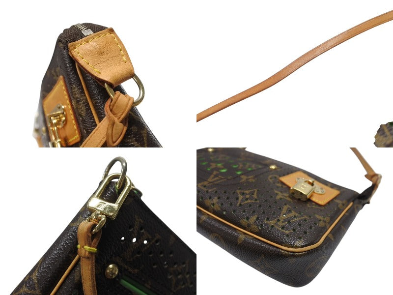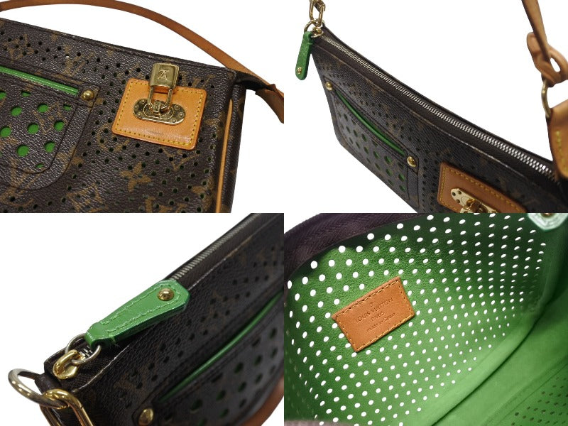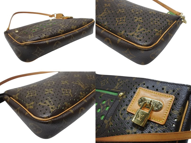 LOUIS VUITTON ルイヴィトン モノグラムペルフォ ポシェット アクセソワール ハンドバッグ ブラウン グリーン M95184 美品 中古 4b004318