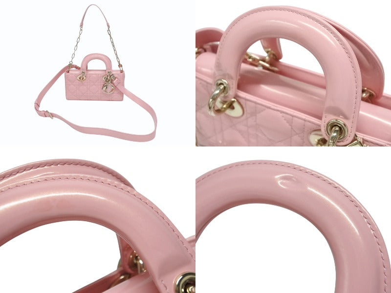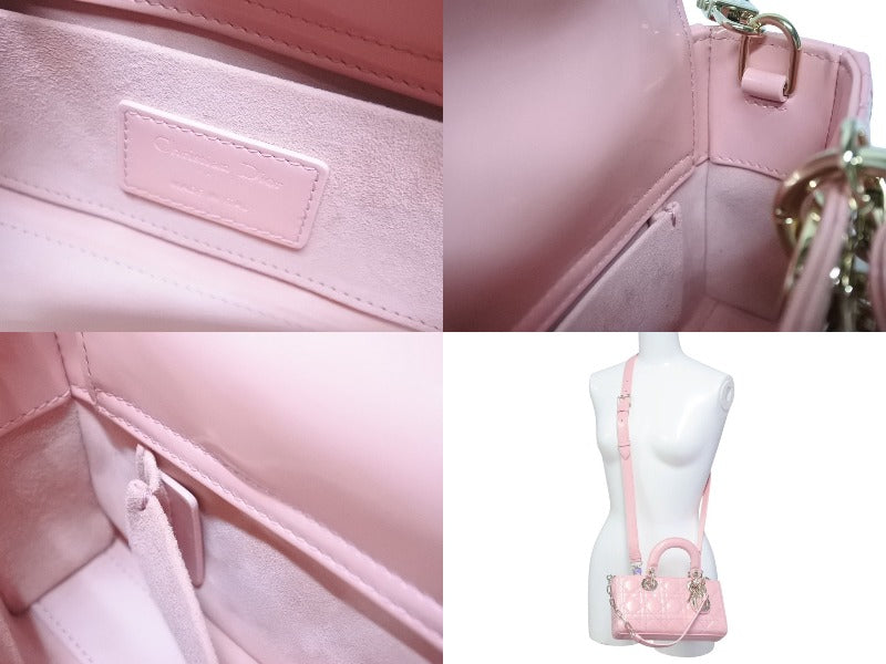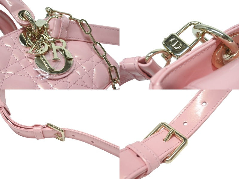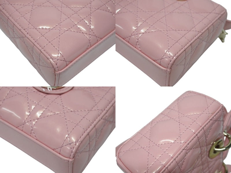 極美品 Christian Dior クリスチャンディオール Lady Dior レディディオール スモール 2WAYバッグ ピンク ヴェルニ 中古 4b004970