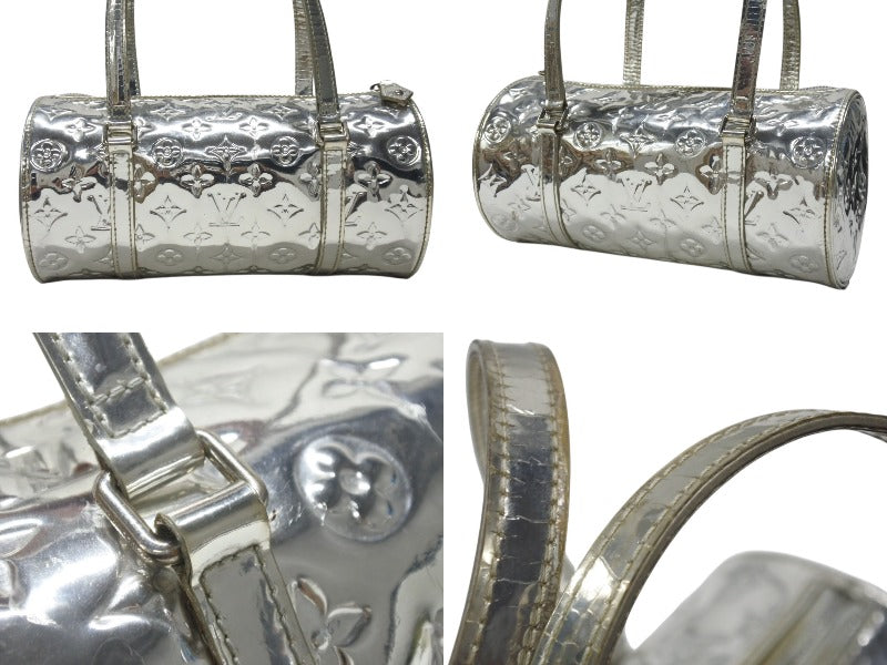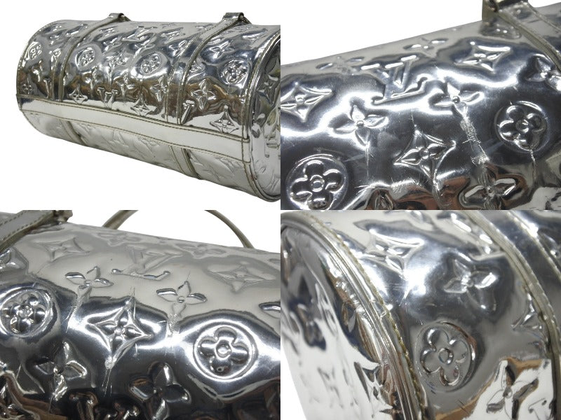 表面とシルバー金具部分に微かに小傷、スレ、シワ、クスミあります。