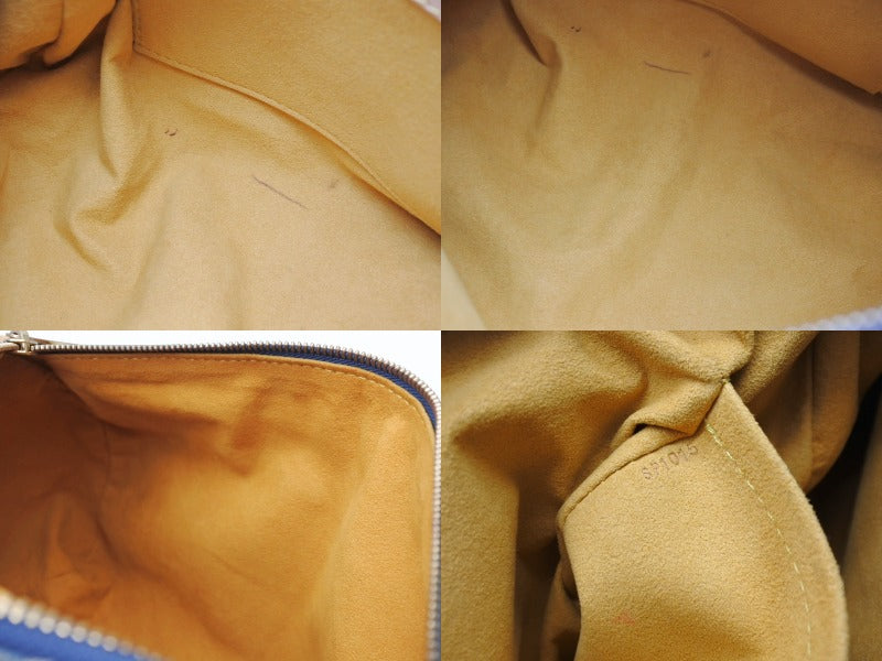 外側ヌメ革部分にシミ、少々ヤケ、スレあり。ハンドルにスレ、ヤケ、シミあり。パイピングにスレあり。表面にヤケあり。金具にスレ、小傷あり。