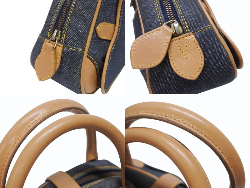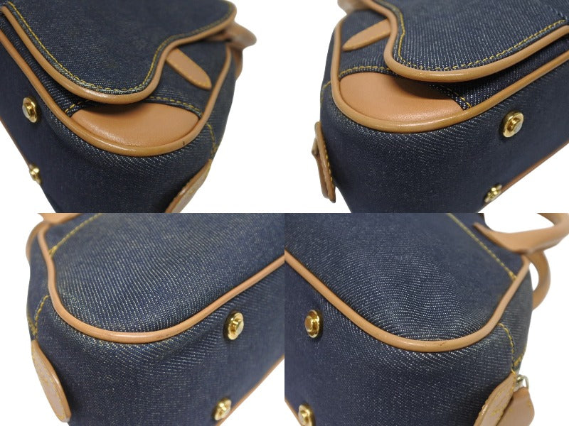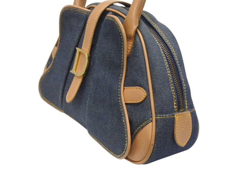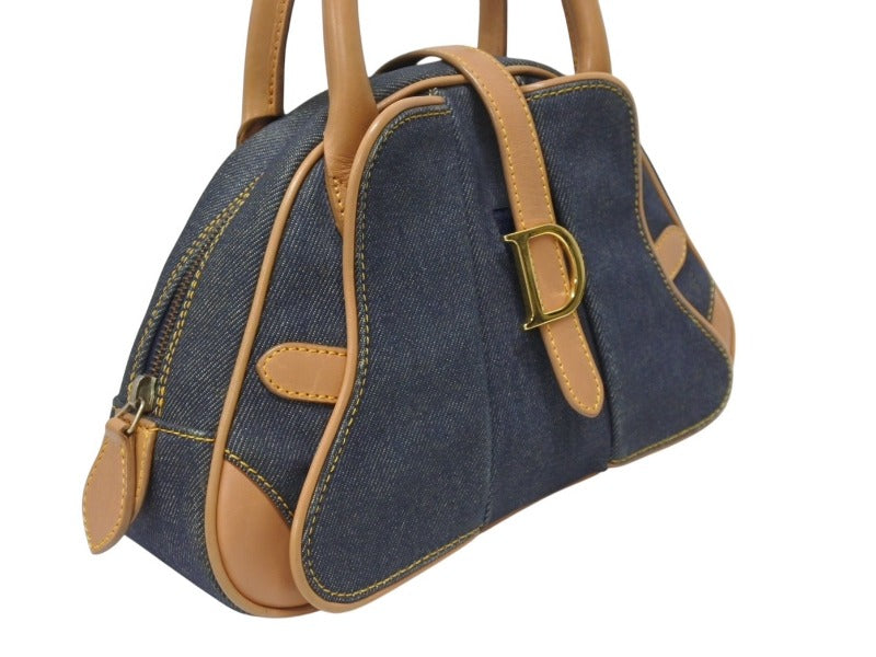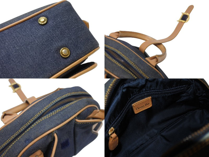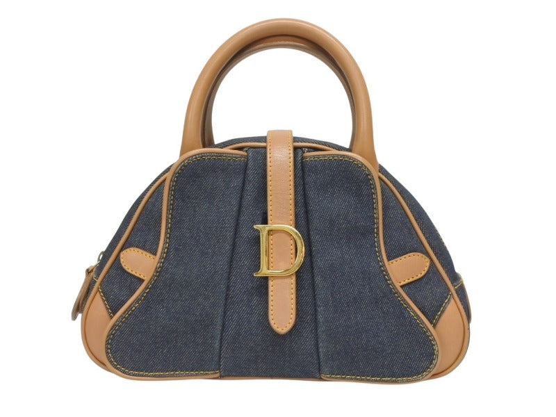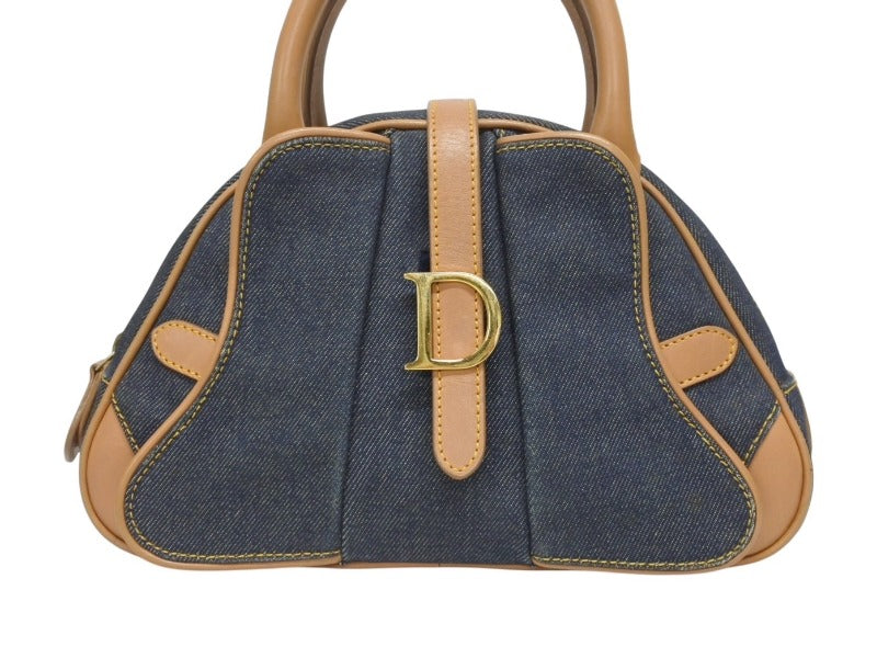 CHRISTIAN DIOR クリスチャンディオール ミニハンドバッグ ダブルサドルバッグ BO E 0501 ネイビー ブラウン ゴールド金具 美品 中古 4b005435