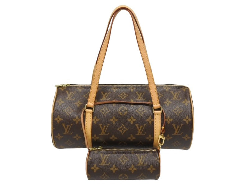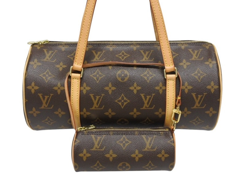 新品同様 LOUIS VUITTON ルイヴィトン パピヨン30 ハンドバッグ M51385 筒型 モノグラムキャンバス ブラウン 中古 4b005589