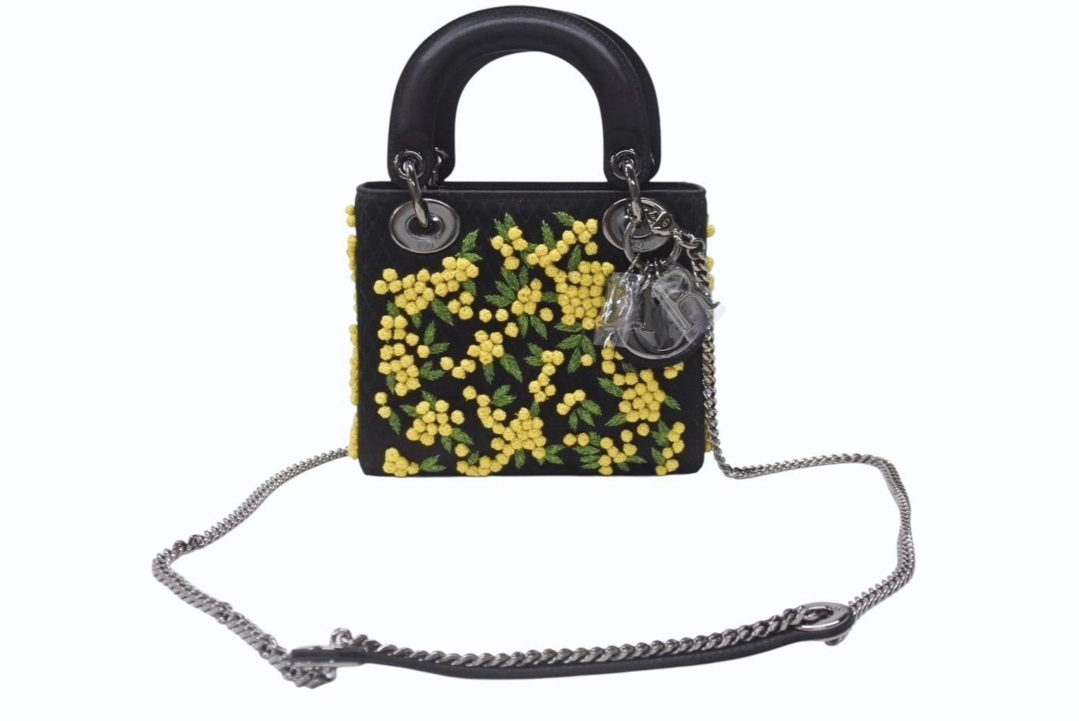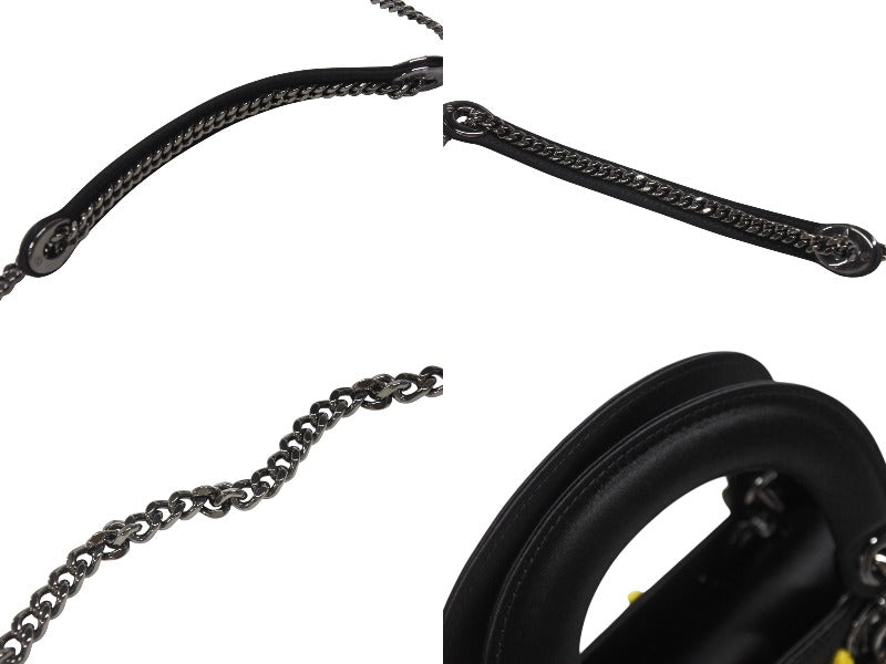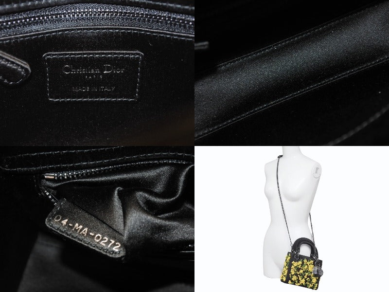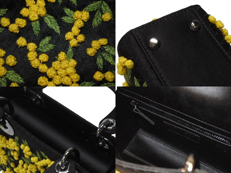 新品未使用 Christian Dior クリスチャンディオール Lady Dior レディディオール スモール 2WAYバッグ 刺繍 サテン ブラック イエロー 中古 4b005678