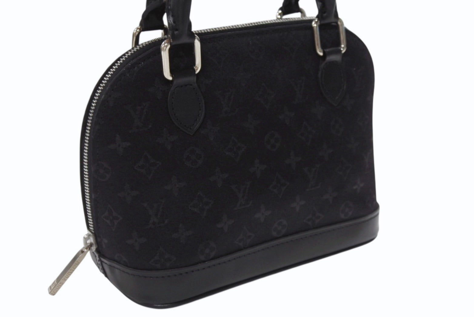 極美品 LOUIS VUITTON ルイヴィトン モノグラムサテン リトル アルマ ミニハンドバッグ M92146 ブラック シルバー金具 中古 4b005834