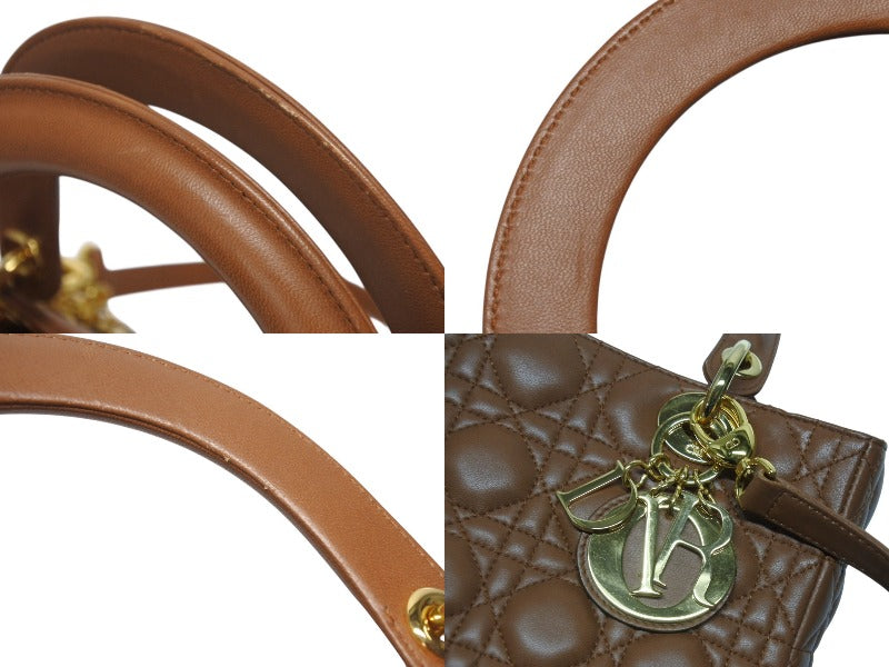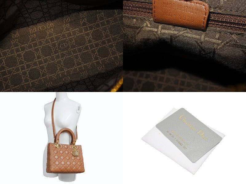 Christian Dior クリスチャンディオール LADY DIOR レディディオール ミディアム 2WAYハンドバッグ ラムスキン カナージュ ブラウン 美品 中古 4b005853