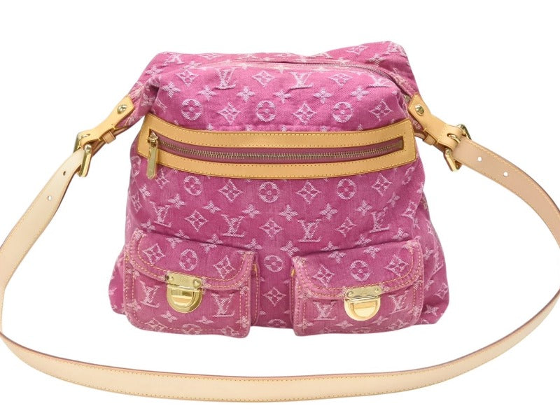 極美品 LOUIS VUITTON ルイヴィトン バギーGM ショルダーバッグ 2WAY M95210 モノグラム デニム ピンク ゴールド金具 中古 4b006543