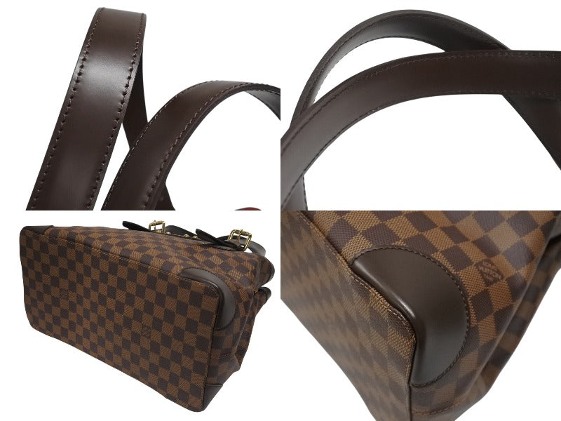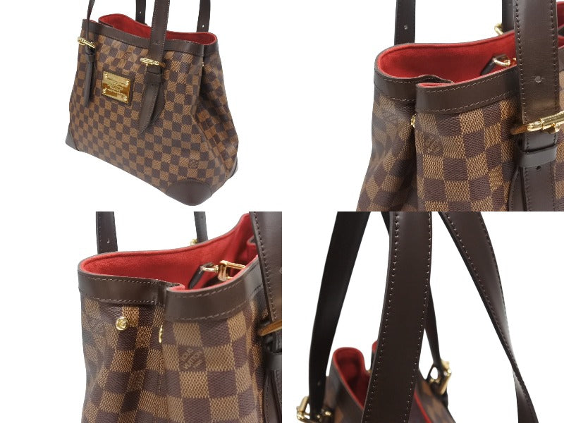 極美品 LOUIS VUITTON ルイヴィトン ハムステッドMM トートバッグ N51204 ダミエ エベヌ ブラウン レザー PVC 中古 4b006619
