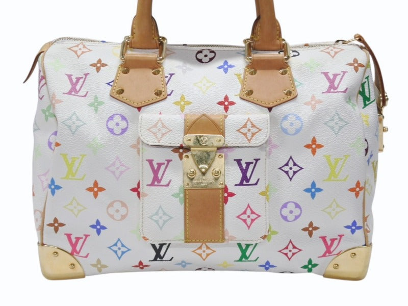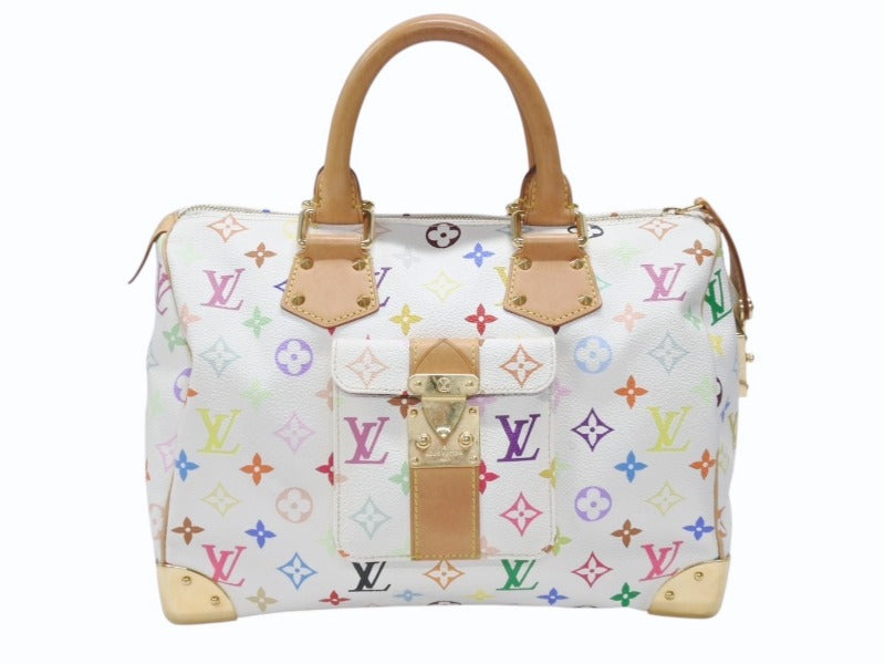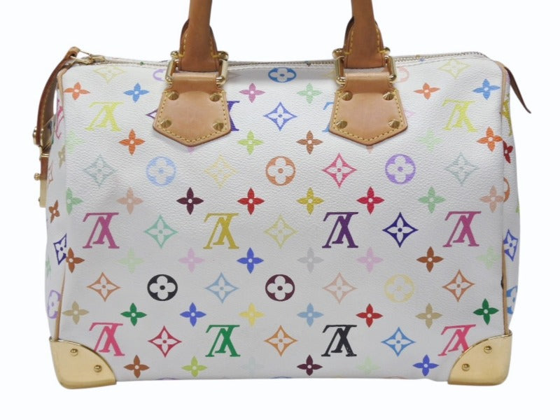 LOUIS VUITTON ルイヴィトン スピーディ30 ハンドバッグ M92643 モノグラム マルチカラー 村上隆 ホワイト 美品 中古 4b006646