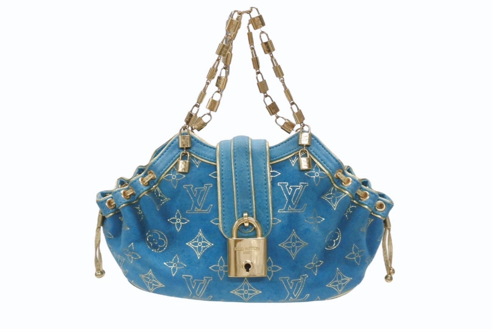 LOUIS VUITTON ルイヴィトン ハンドバッグ 希少 M92374 テダPM エクストラオーディネル スエード ターコイズブルー 美品 中古 4b007024