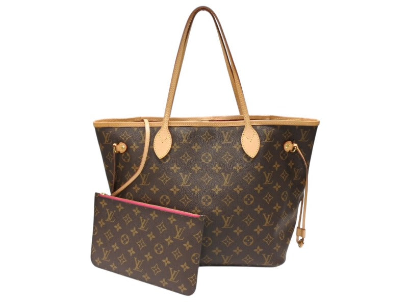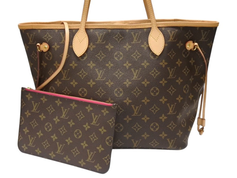 極美品 LOUIS VUITTON ルイヴィトン ネヴァーフルMM トートバッグ 新型 M41178 モノグラム PVC レザー ブラウン ピンク 中古 4b007490