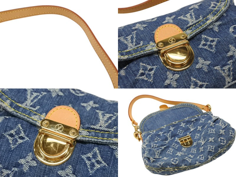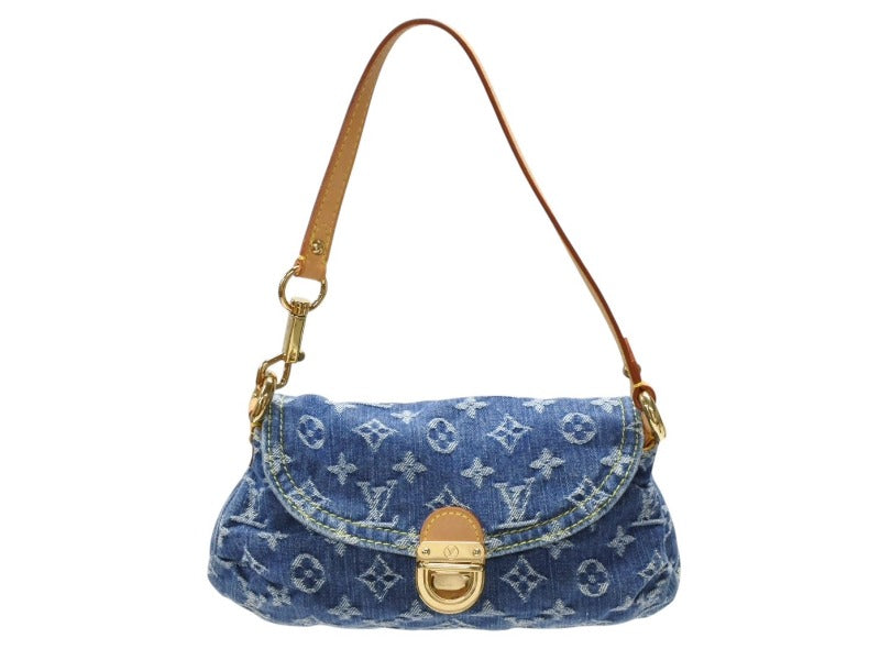 極美品 LOUIS VUITTON ルイヴィトン ミニプリーティ ハンドバッグ M95050 モノグラムデニム レザー ブルー 中古 4b007724