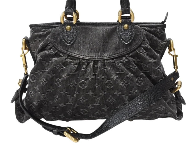 極美品 LOUIS VUITTON ルイヴィトン LV ネオカヴィ MM ハンドバッグ M95351 モノグラム デニム ブラック 2WAY ゴールド金具 中古 4b007754