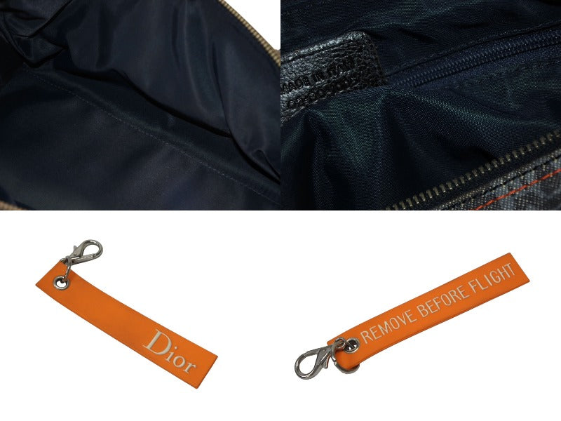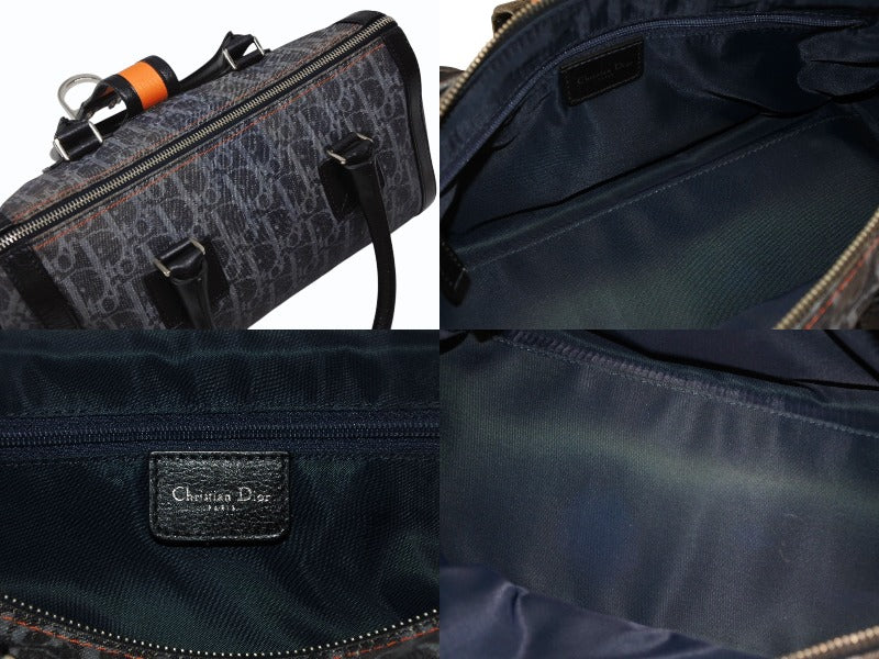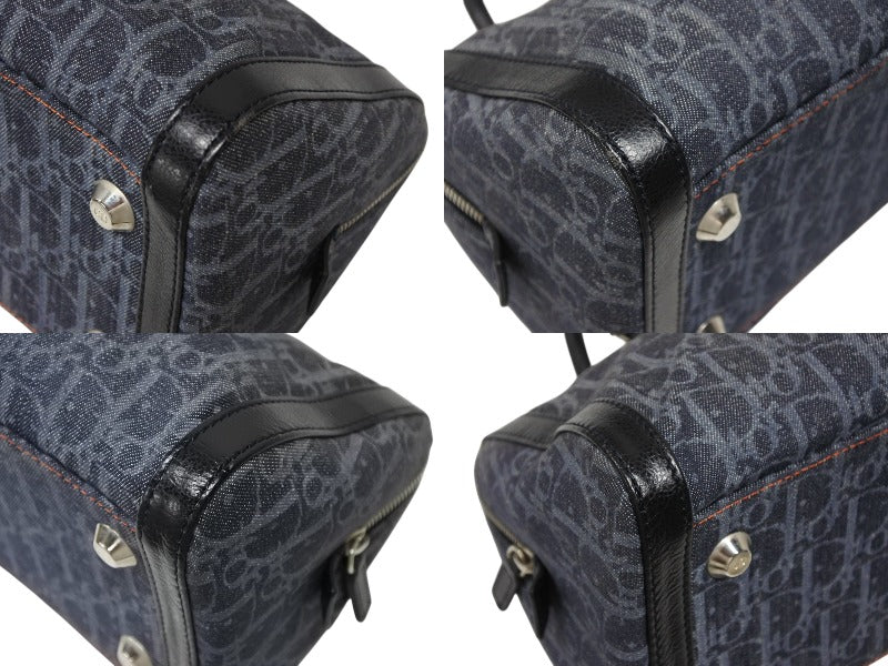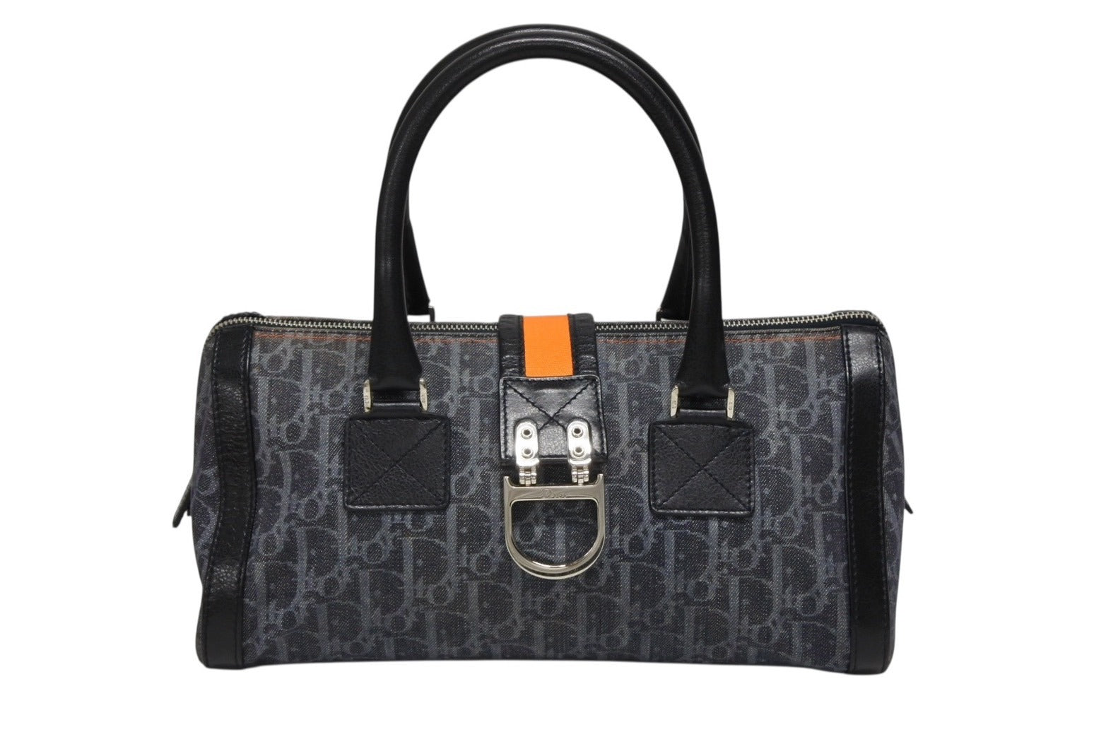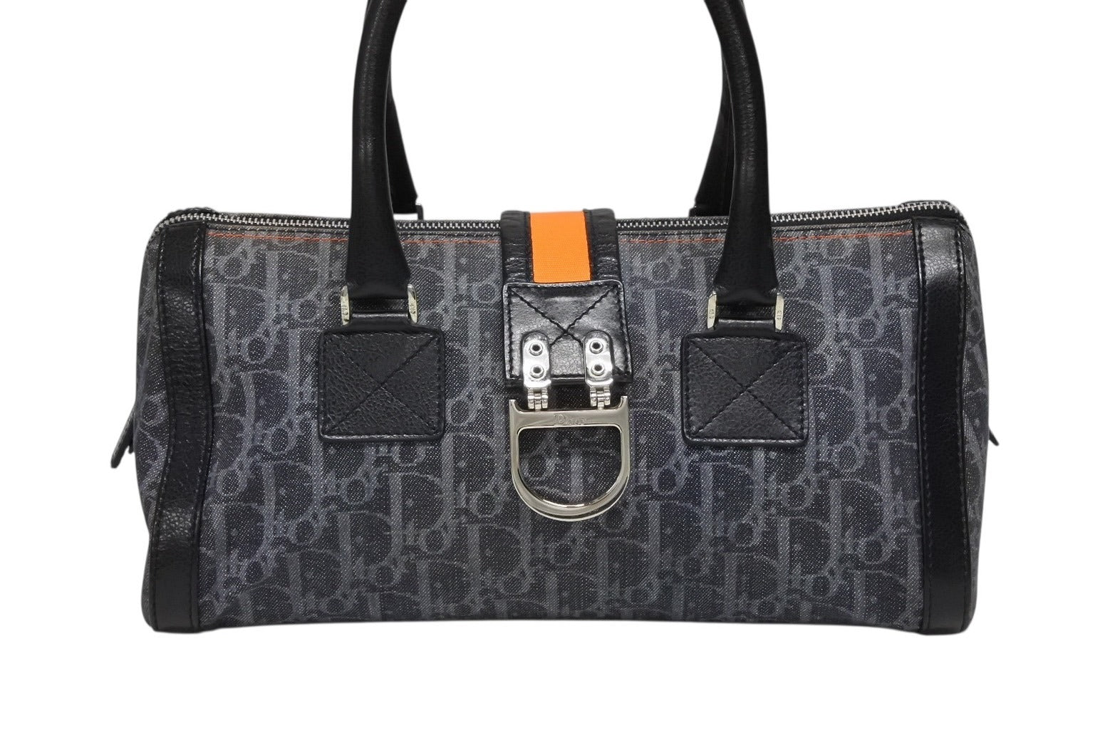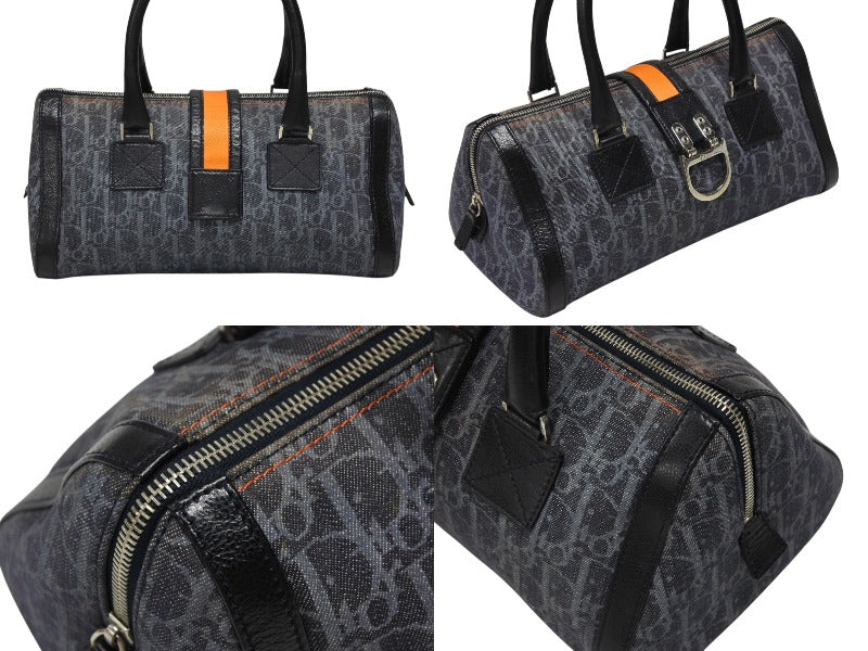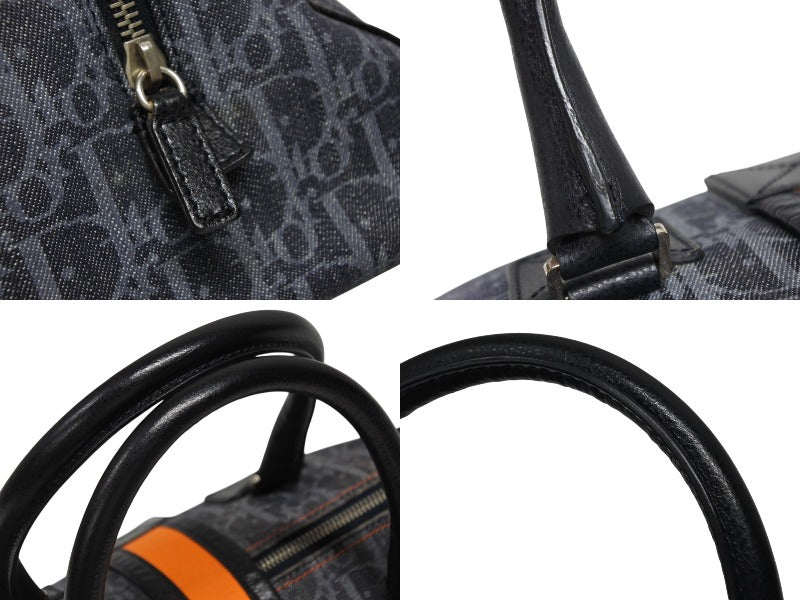 極美品 CHRISTIAN DIOR クリスチャンディオール トロッターライン ハンドバッグ 02-B0-1015 ネイビー オレンジ シルバー金具 中古 4b008289