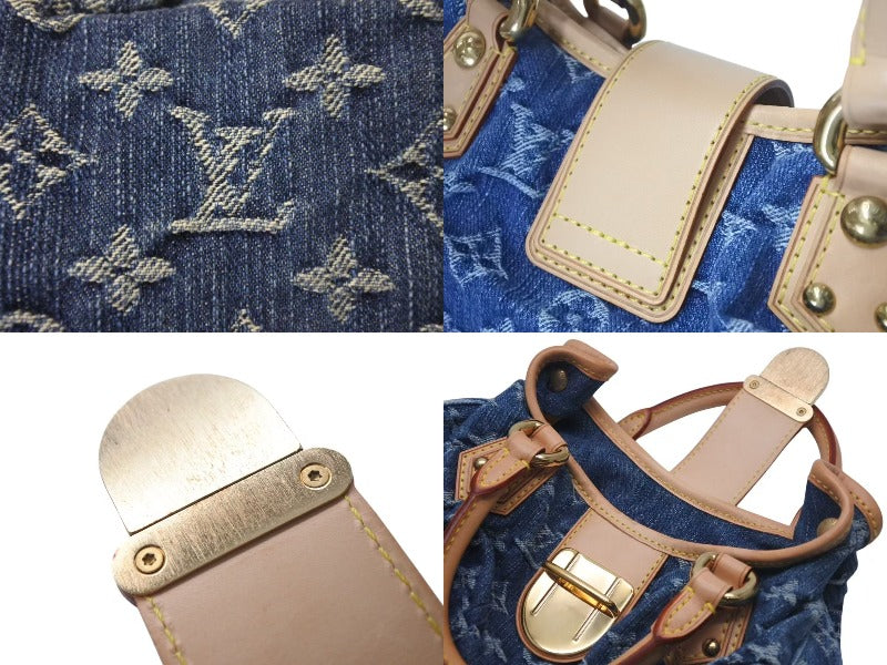 新品同様 LOUIS VUITTON ルイヴィトン モノグラムデニム ミニプリーティ PM ハンドバッグ M95020 レザー ブルー 中古 4c075247