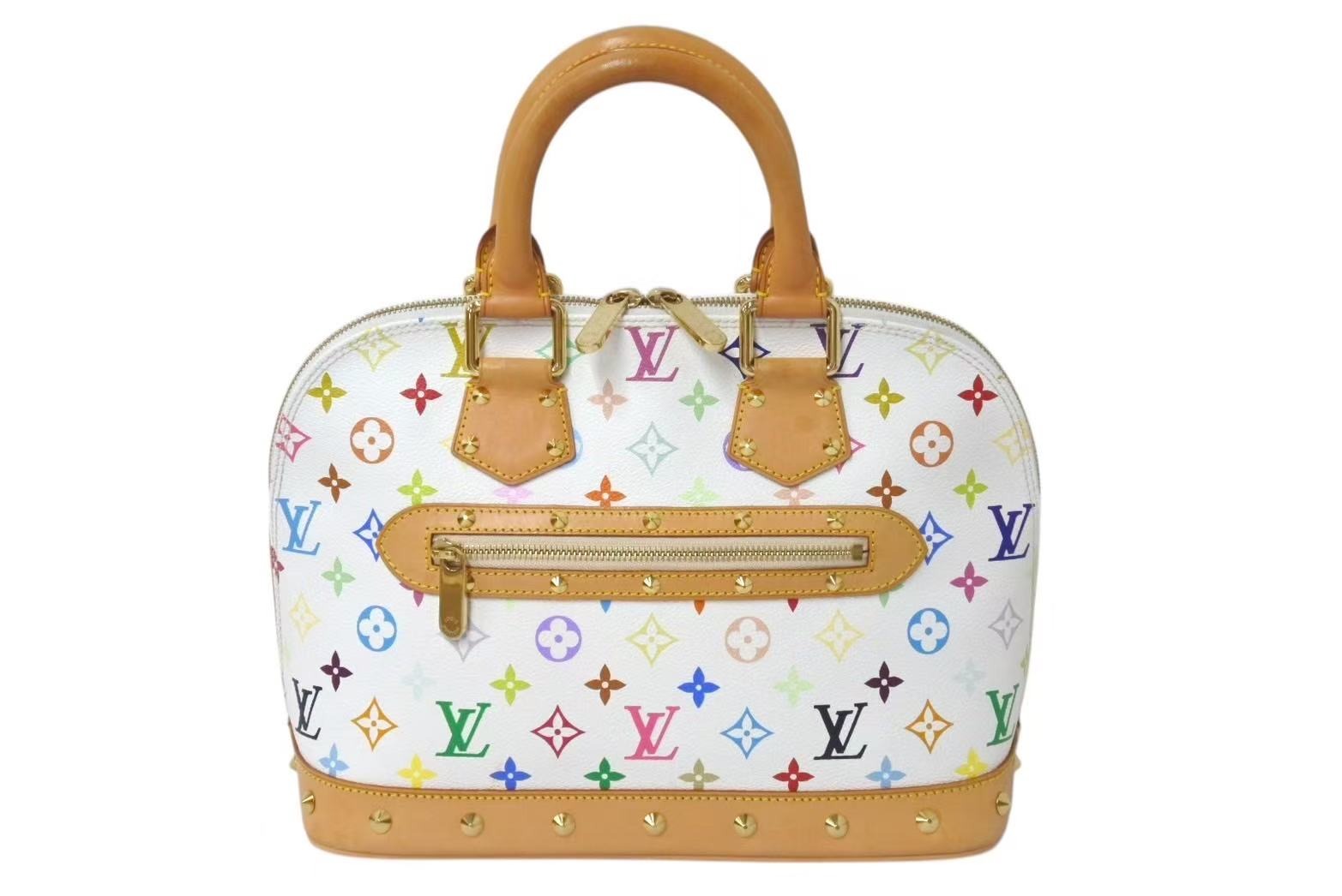LOUIS VUITTON ルイヴィトン モノグラムマルチ アルマ ハンドバッグ M92647 村上隆 ホワイト ゴールド金具 美品 中古 4c075374