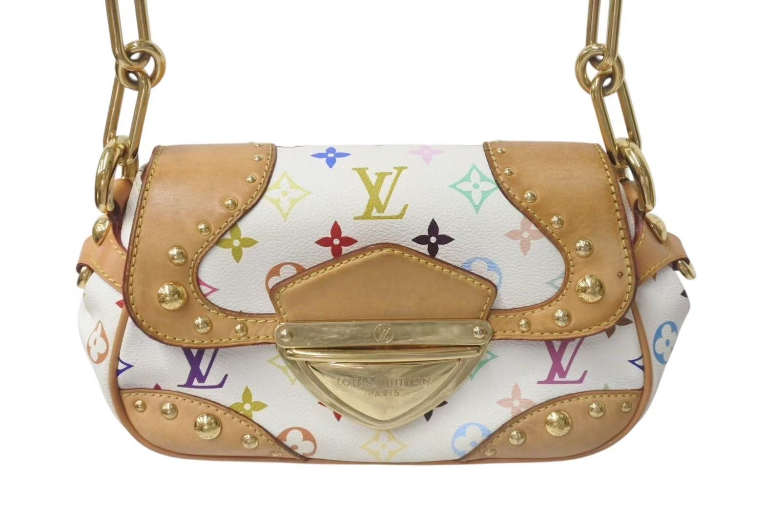 LOUIS VUITTON ルイヴィトン マリリンPM ハンドバッグ M40127 モノグラム マルチカラー ホワイト ゴールド金具 村上隆 美品 中古 4c075441