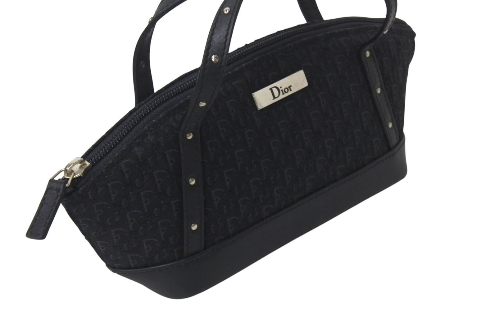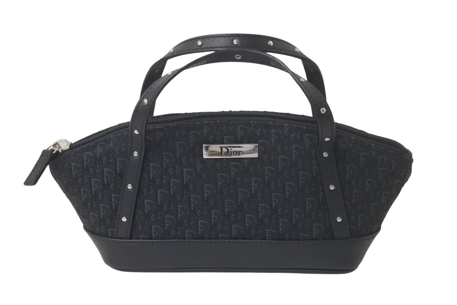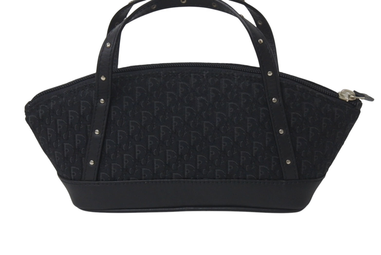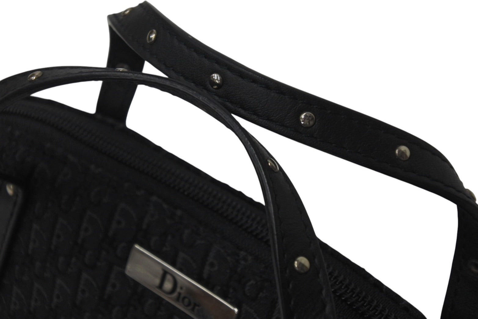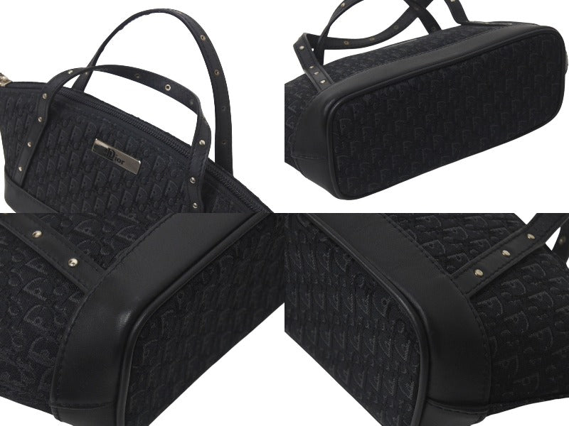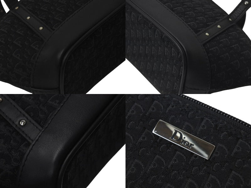 Dior ディオール トロッター ミニハンドバッグ 総柄 ブラック MC0063 コットンキャンバス レザー シルバー金具 中古 4c076402