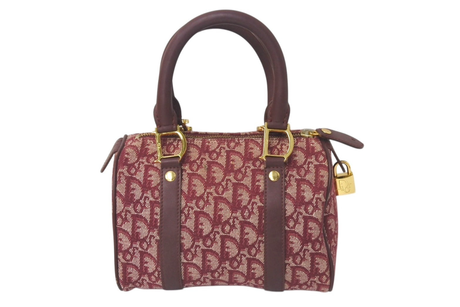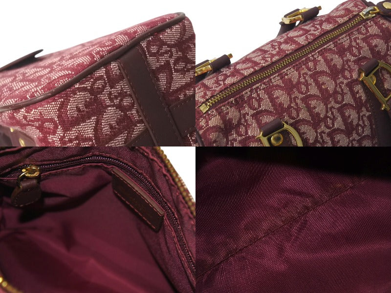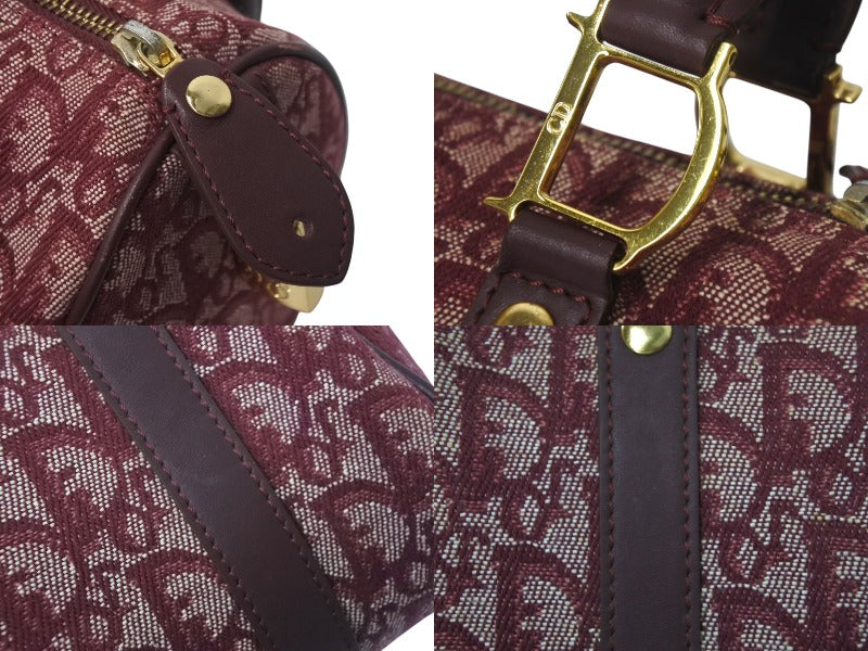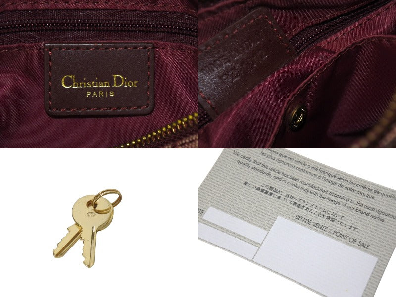 極美品 Christian Dior クリスチャンディオール ミニハンドバッグ ヴィンテージ トロッター柄 キャンバス レザー ボルドー 中古 4c076407