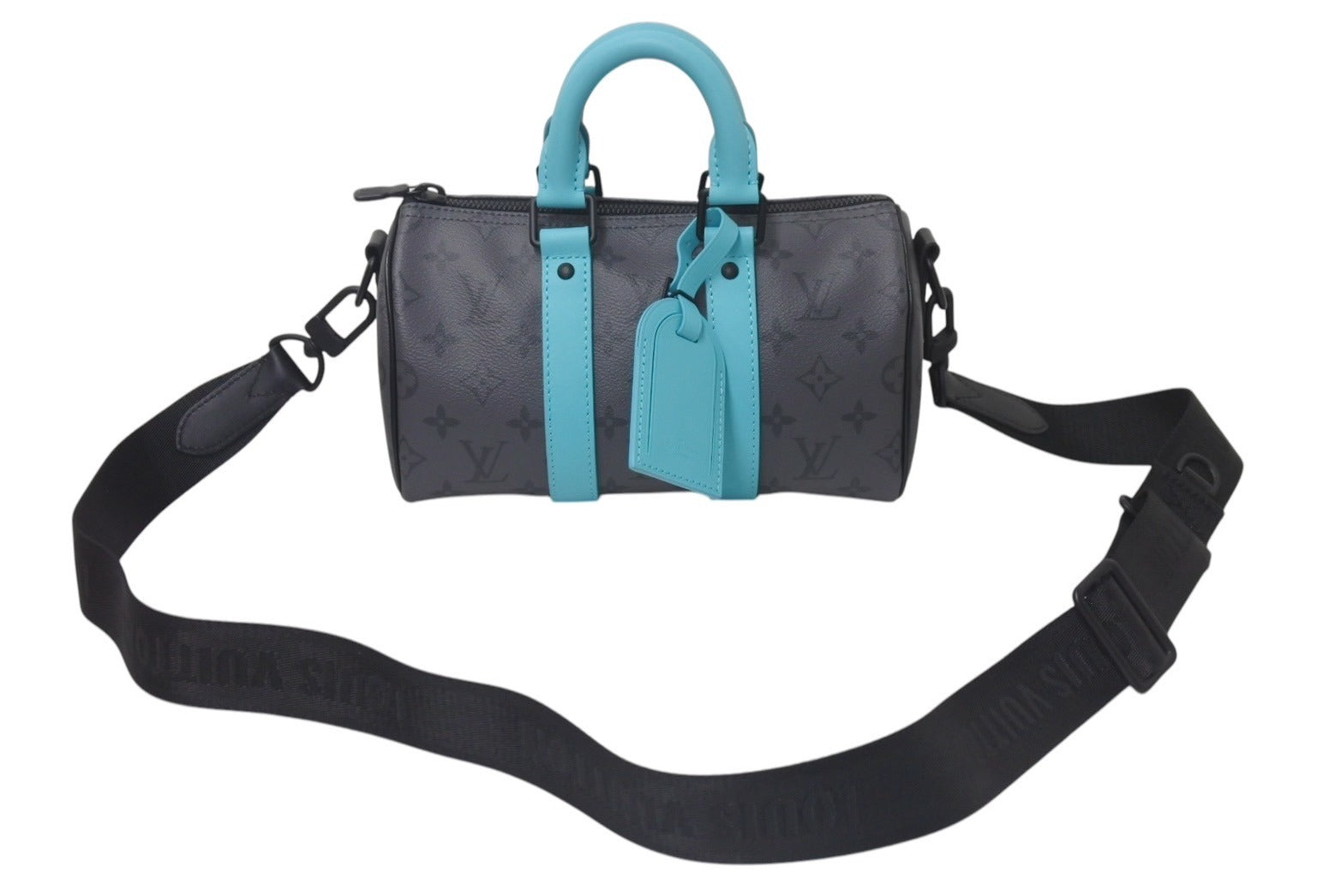 極美品 LOUIS VUITTON ルイヴィトン キーポル バンドリエール25 2WAYバッグ M11645 モノグラム エクリプス グレー ターコイズ 中古 4c076534