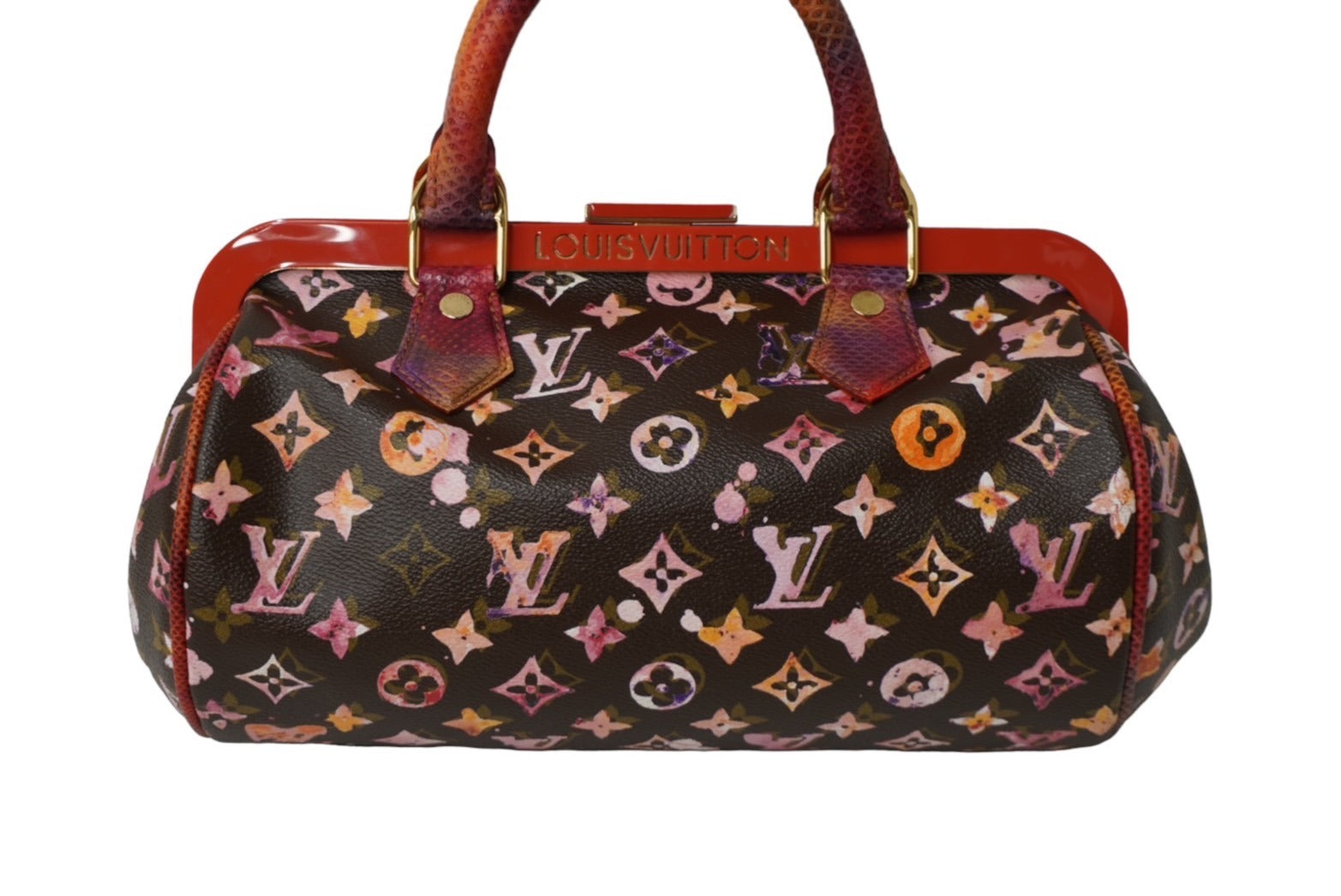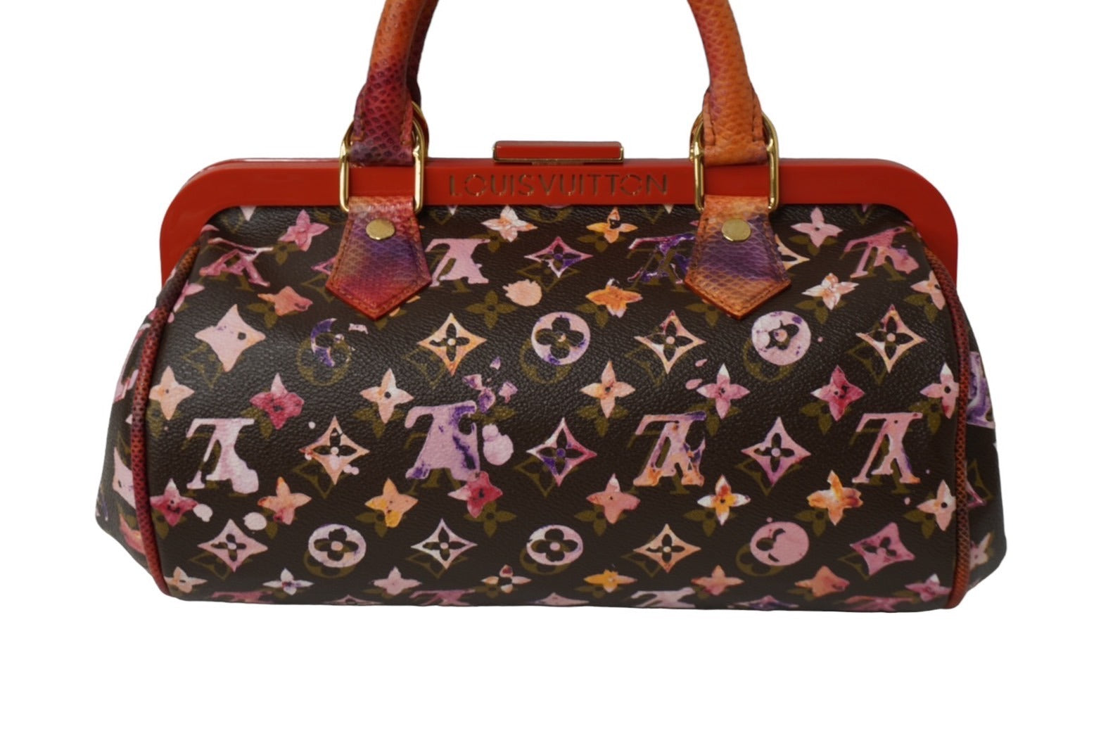 極美品 LOUIS VUITTON ルイヴィトン モノグラムウォーターカラー リチャードプリンス パピヨン ハンドバッグ M95730 ブラウン レッド 中古 62844