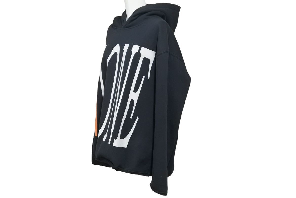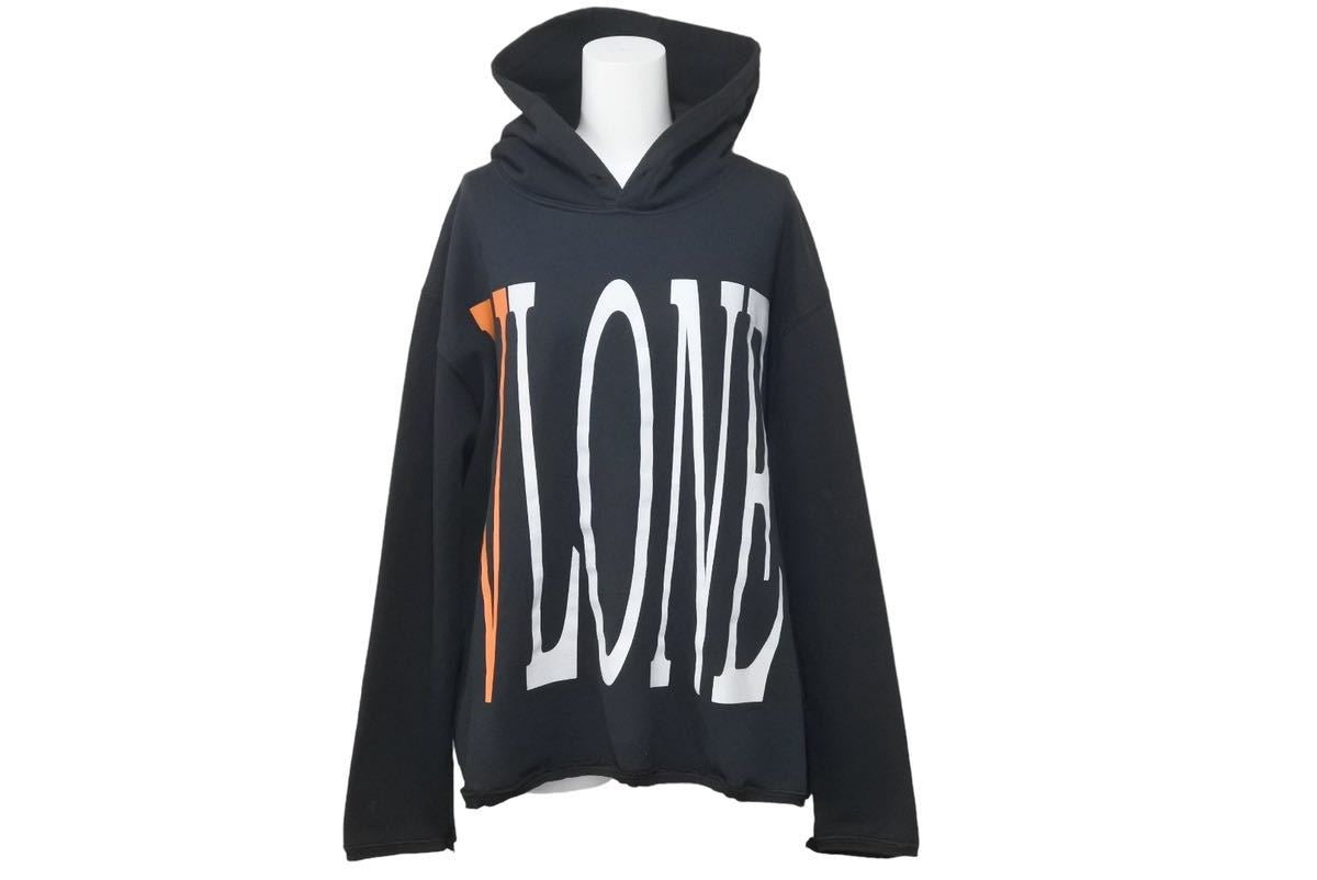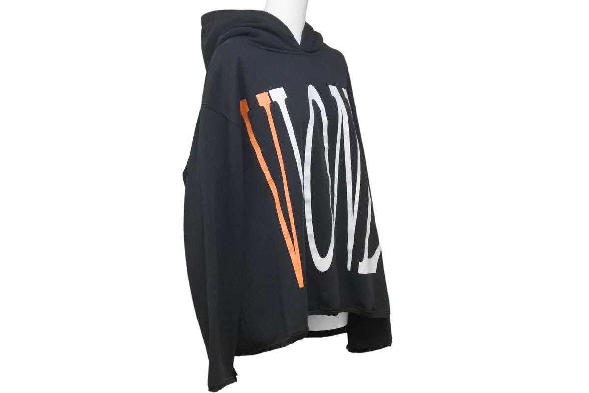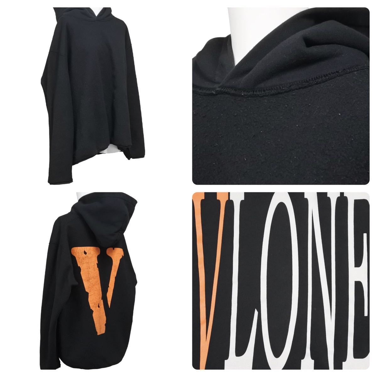 VLONE ヴィ―ローン ステープル フーディ ロゴ プルオーバー パーカー DRY CLEAN ONLY サイズL ブラック×オレンジ 美品 中古 47640