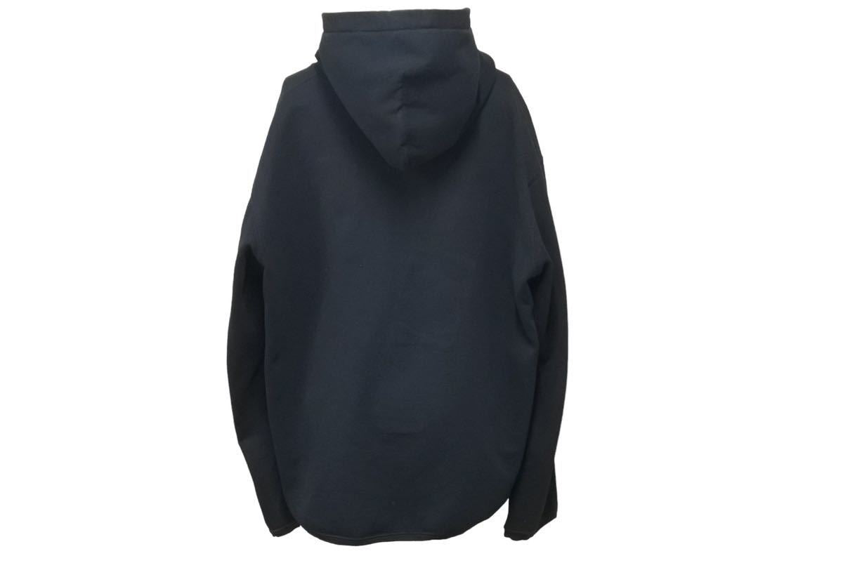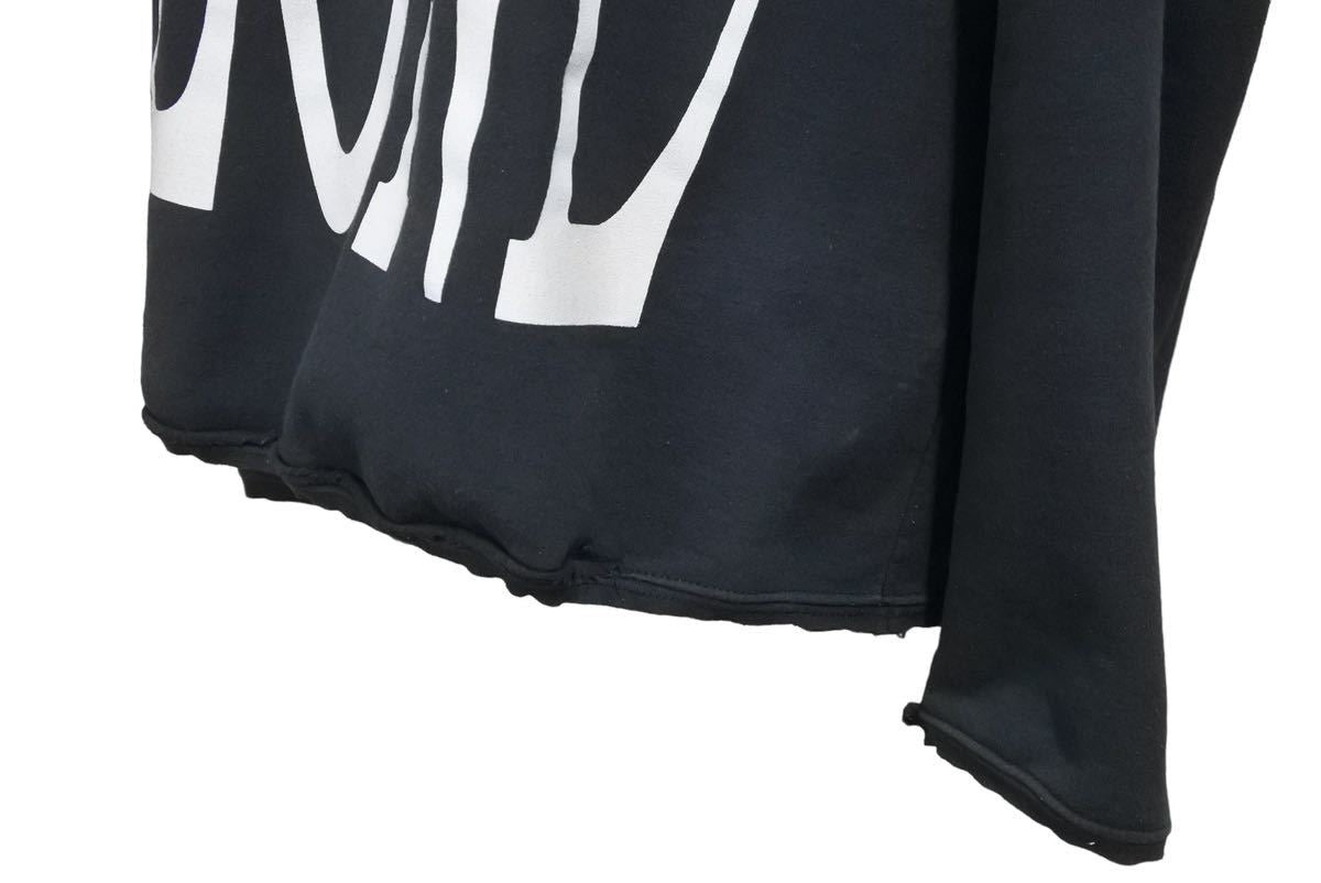太い身幅に比べ、着丈が短めで切りっぱなしが特徴でビックワイドなサイズ感ですが、ボトムスに干渉しない丈感が絶妙です。裏側に大きなVロゴがプリントされ、見えないからこそかっこいいデザインとなっており、裏起毛の厚手のパーカーです。