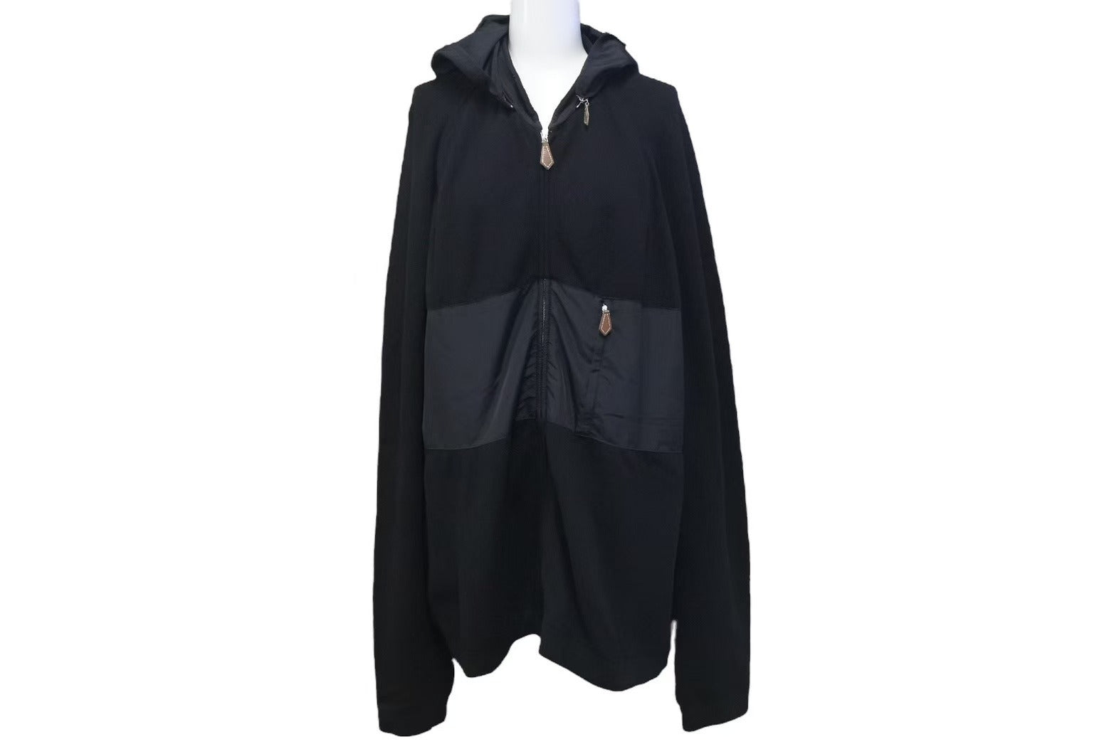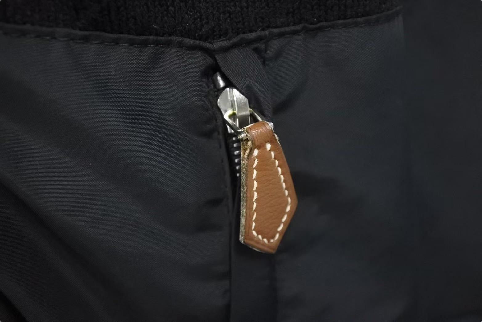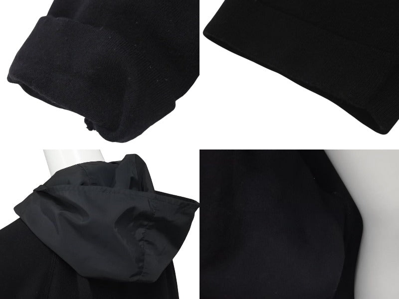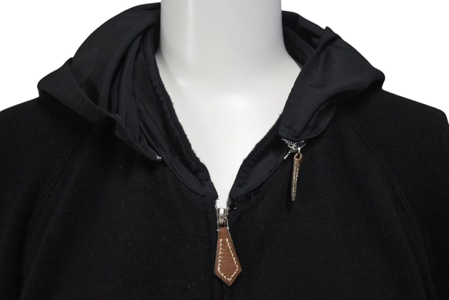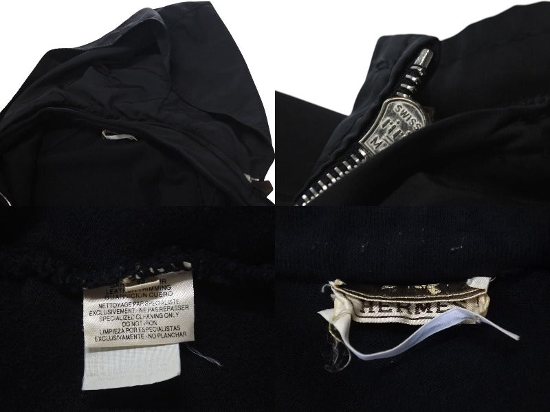 HERMES エルメス ニット パーカー ジップアップ ナイロン切替 ウール ナイロン レザー ブラック ブラウン サイズS 美品 中古 4c074146