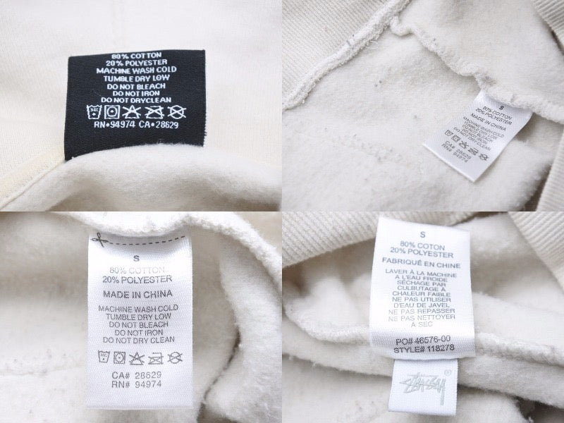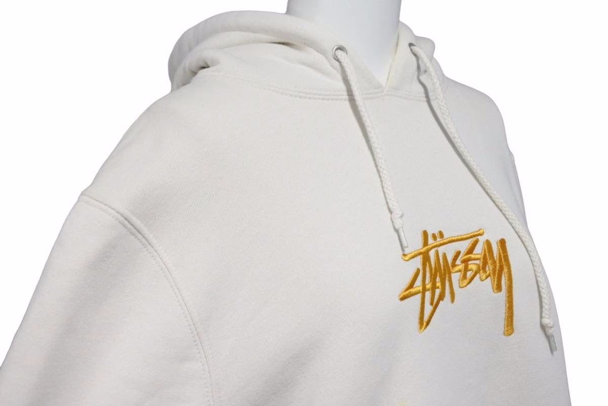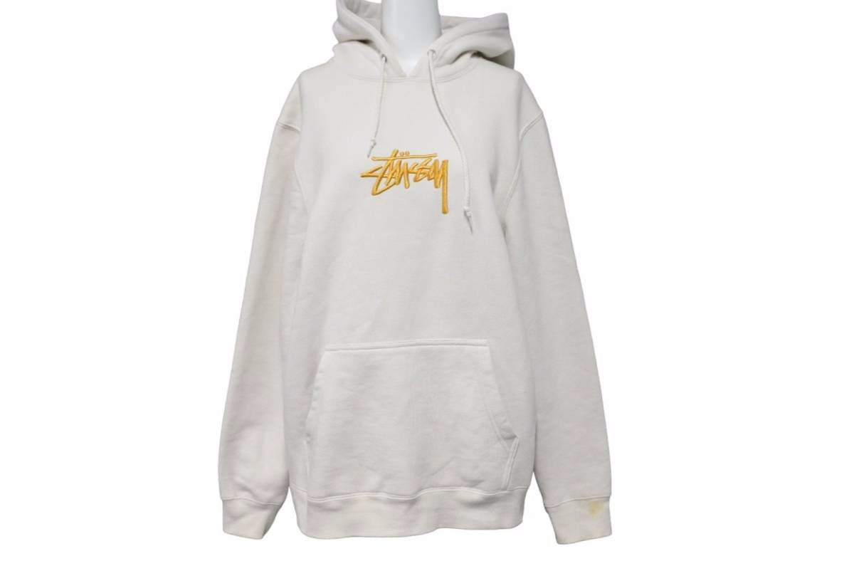 STUSSY パーカー ステューシー デカロゴ 刺繍 ゴールド アイボリー Sサイズ ストリート スケート 中古 50923