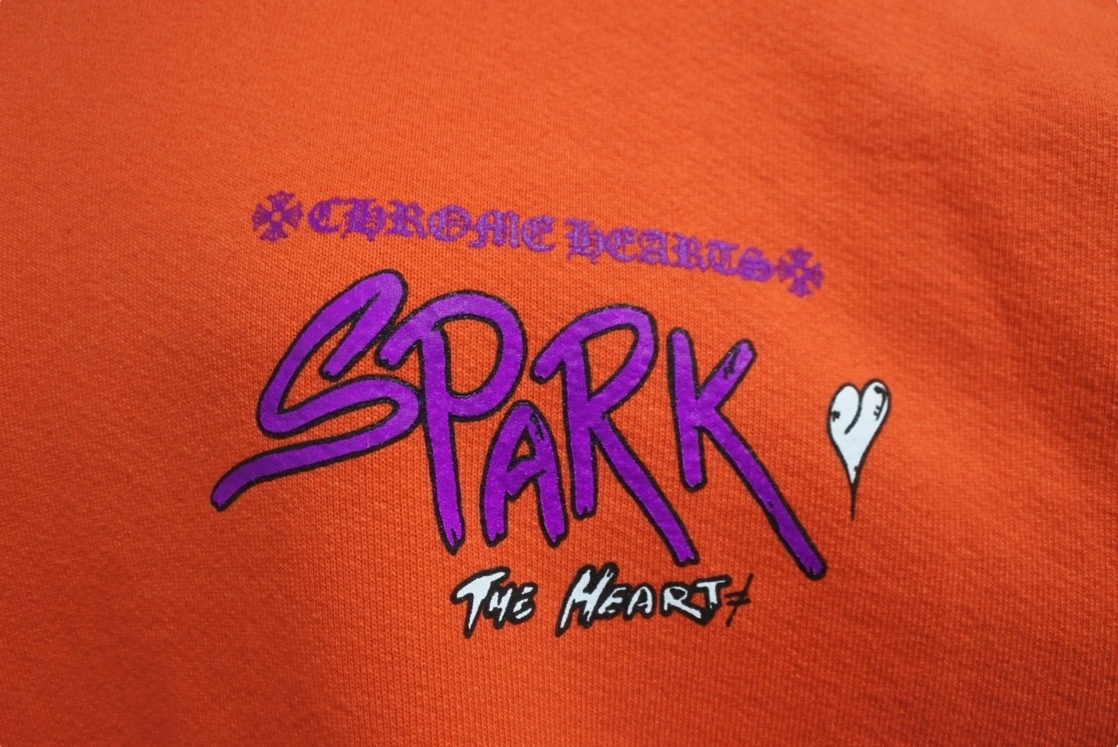 CHROME HEARTS クロムハーツ パーカー マッティボーイ PPO SPARK THE HEART サイズXL プリント オレンジ コットン 美品 中古 62640